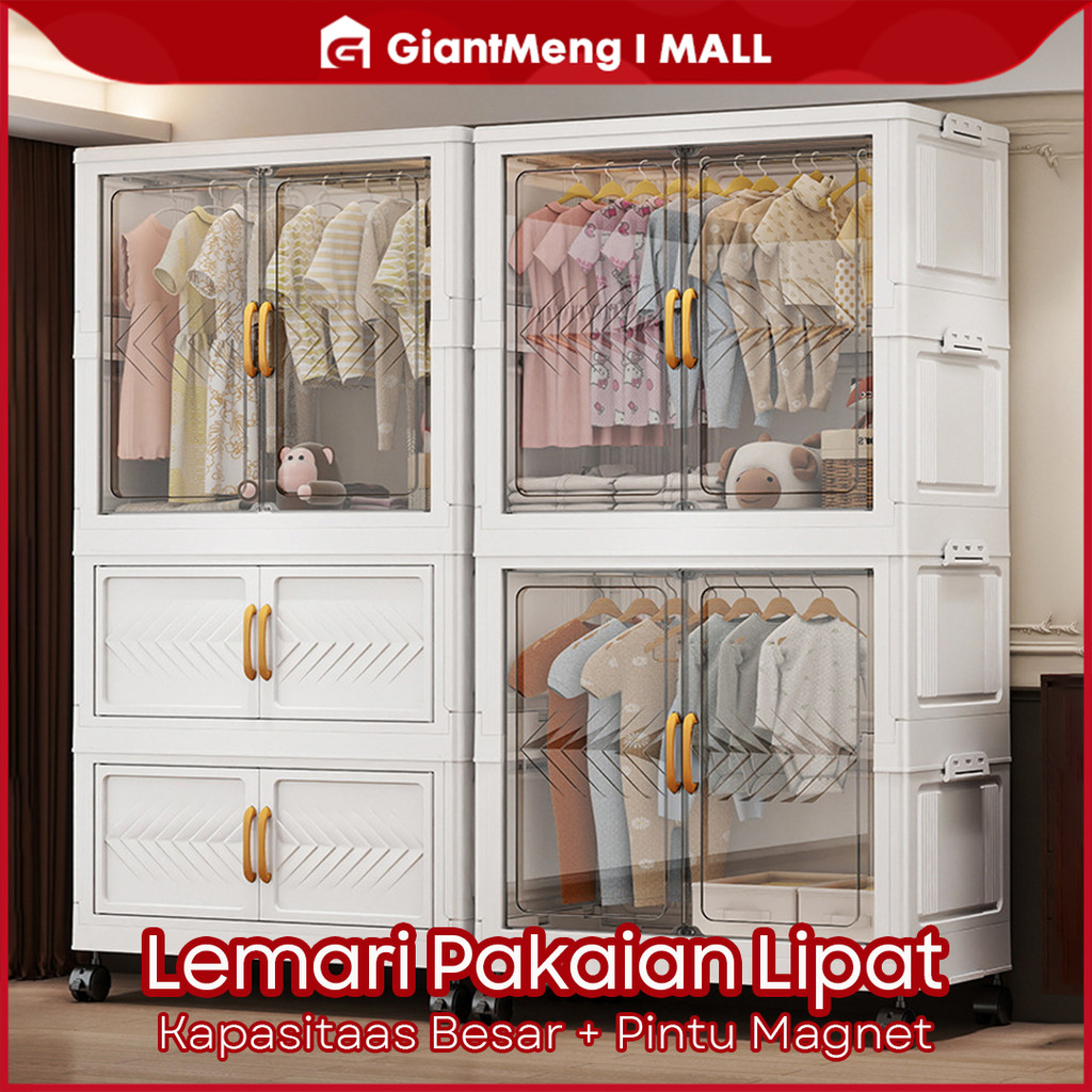 GiantMeng - Lemari Pakaian Lipat 60cm Multifungsi Kapasitas Super Besar Storage Tutup Magnetik