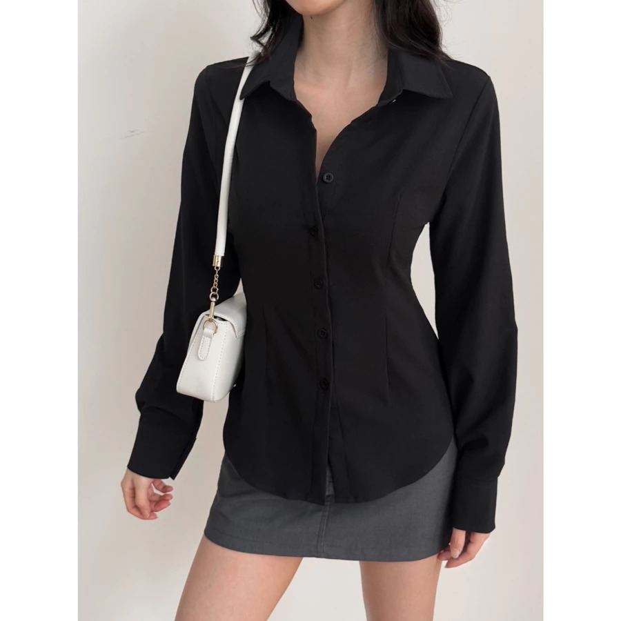 Kemeja Wanita Lengan Panjang Fitted Shirt Casual Korean Style Bahan Cotton Baju Atasan Wanita Terbaru