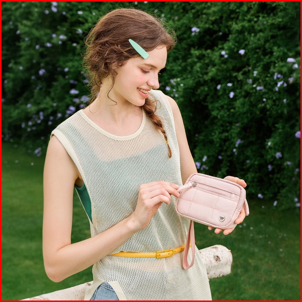 Westbronco Dompet Puffer Clousie Bag Dompet Wanita Clutch Wrist Bag Dengan 3 Kompartmen Resleting Dilengkapi Tali Pergel