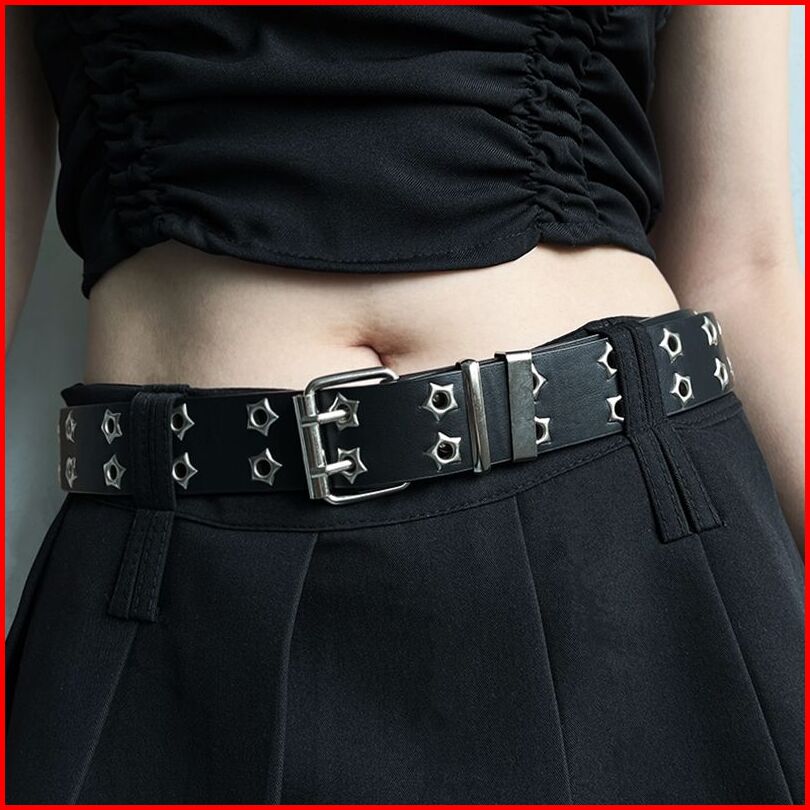Ikat Pinggang Y2k Buckle Star Lubang Banyak Edgy Sabuk Wanita Punk Style Lebar Dengan Rivet Aksesoris Jeans Retro Trendy