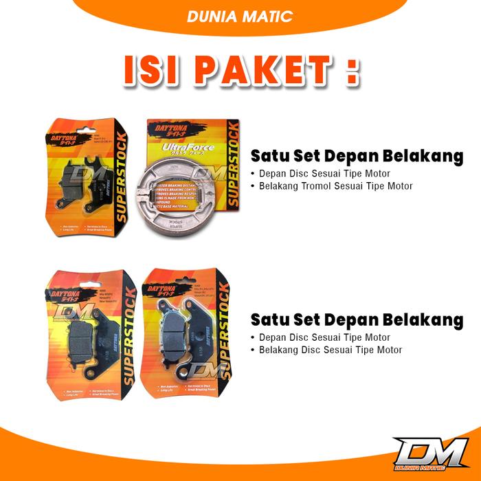 PAKET KAMPAS REM DEPAN BELAKANG MATIC DAYTONA PCX, ADV, VARIO, BEAT, SCOOPY, DELUXE, STREET, GENIO, MIO, GEAR 125, MIO M