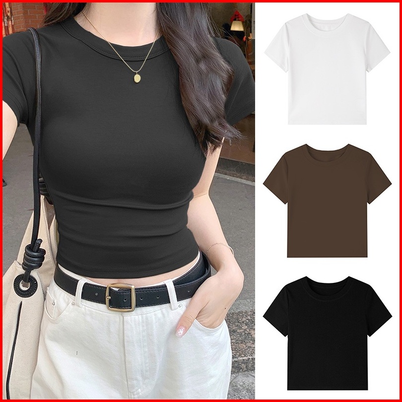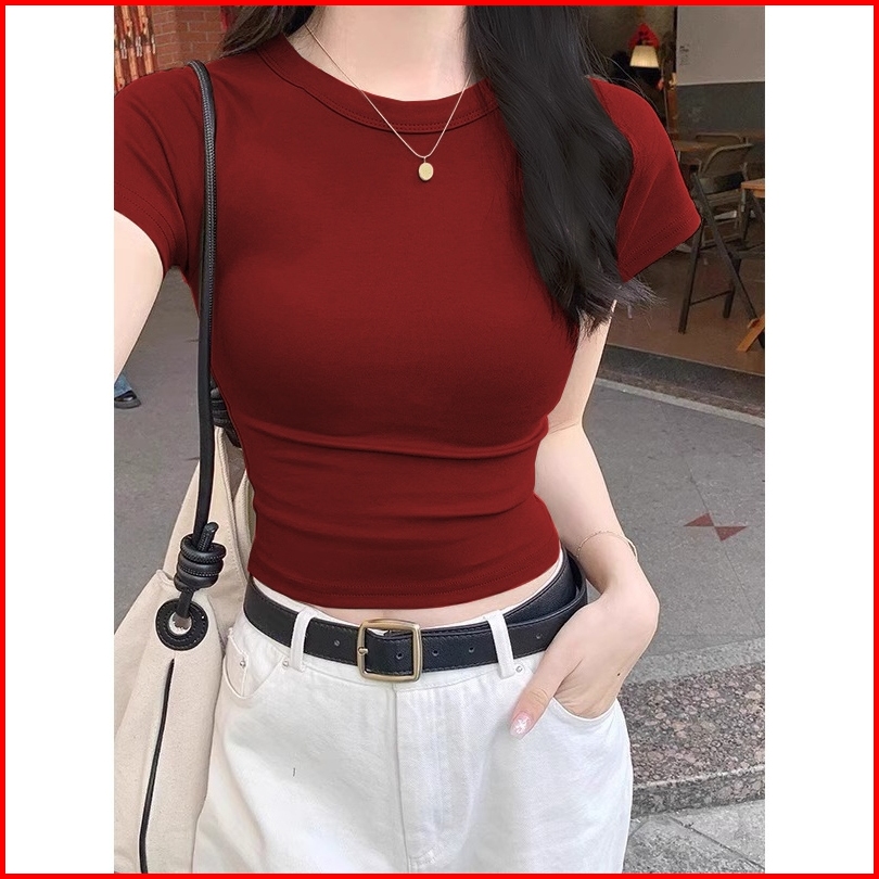Kaos Pendek Katun Polos Atasan Lengan Pendek Leher Bulat Multi Warna Ramping Kualitas Tinggi Terbaru Wanita