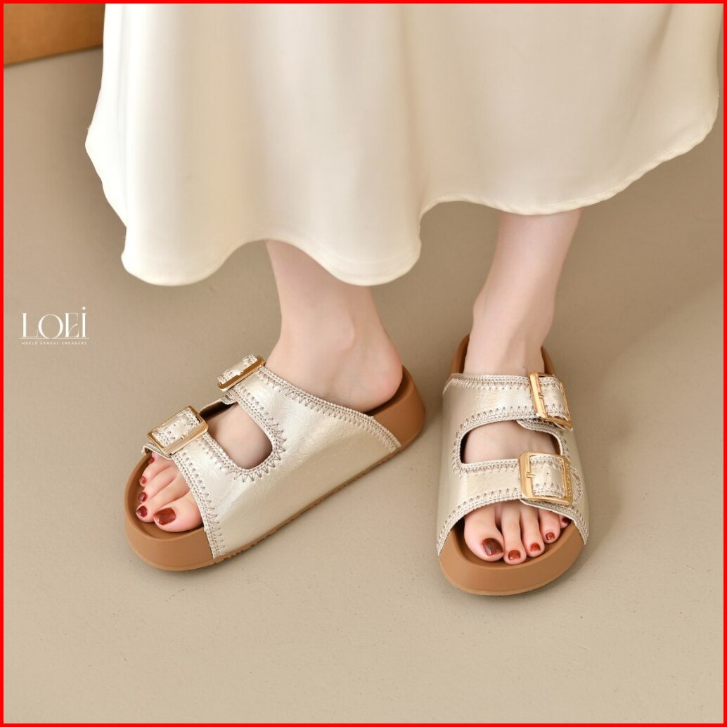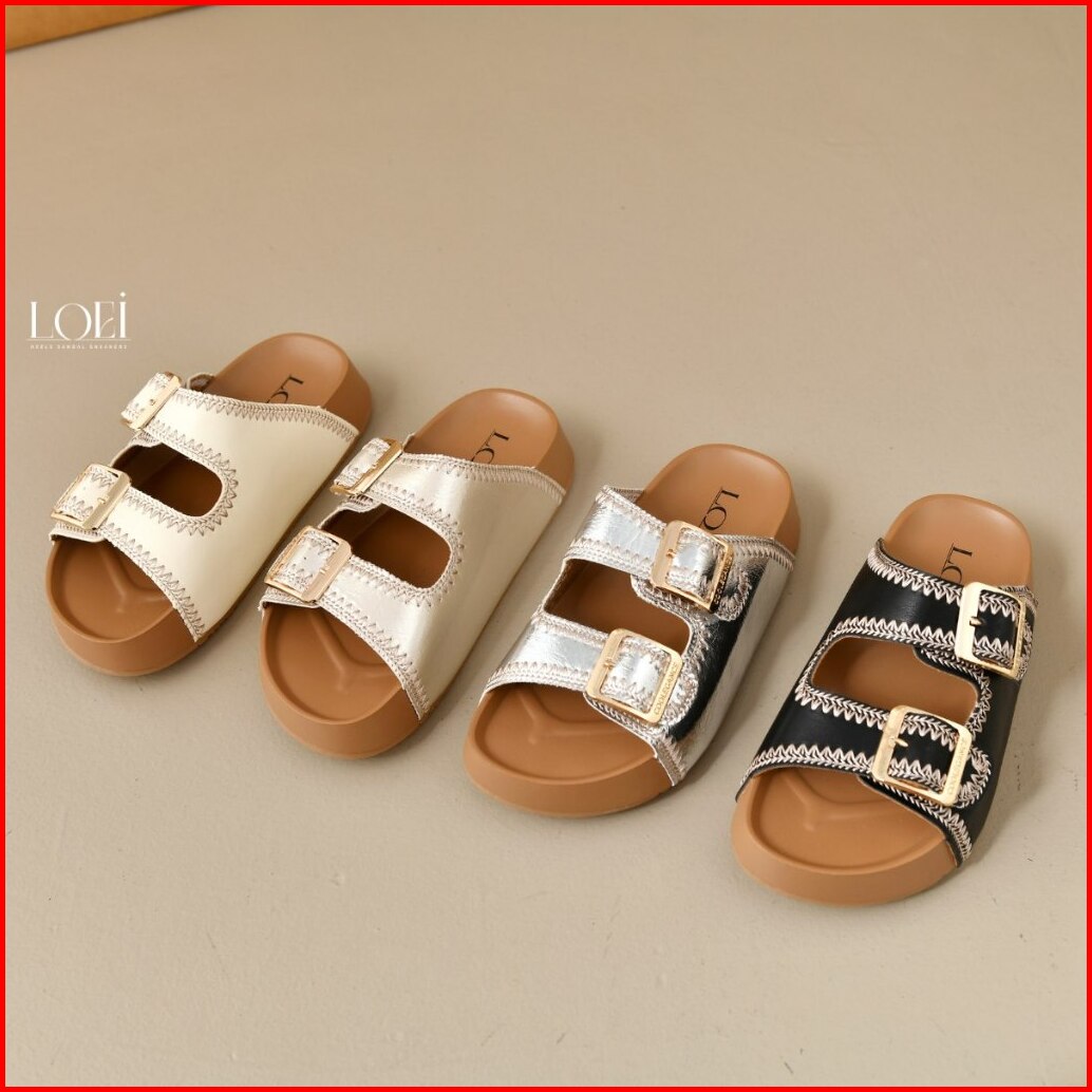 Loei Harvia Sandal Fashion Wanita Slip On 2 Strap Korean Look 2611