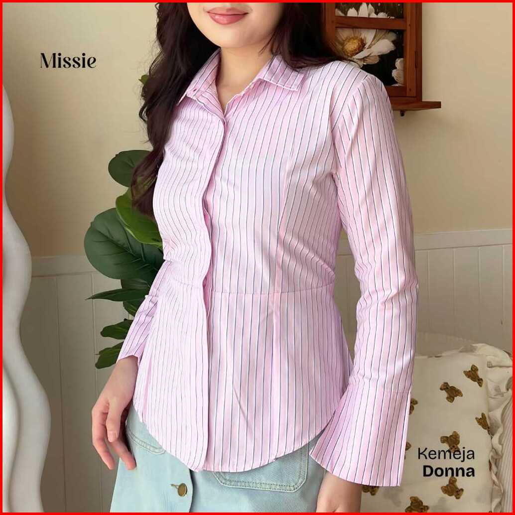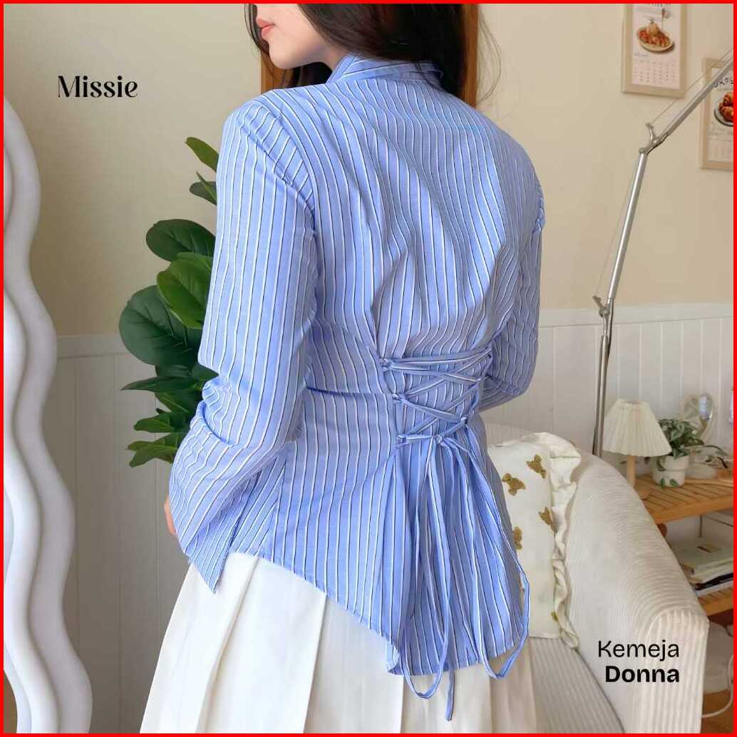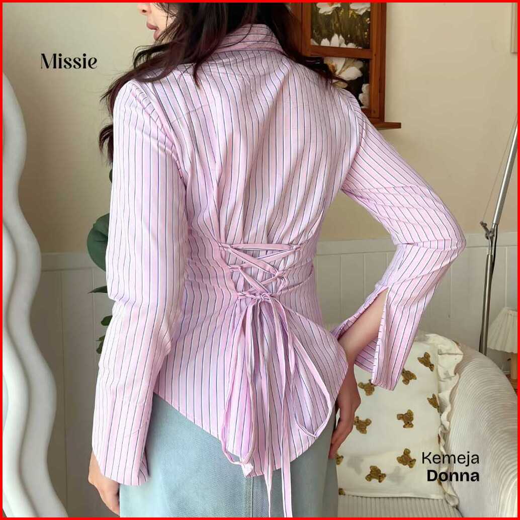 Missie - Dona Kemeja Slim Fit Wanita Motif Salur Tali Belakang