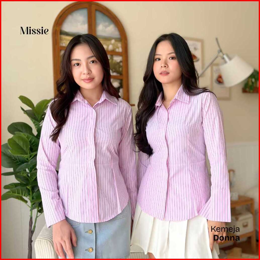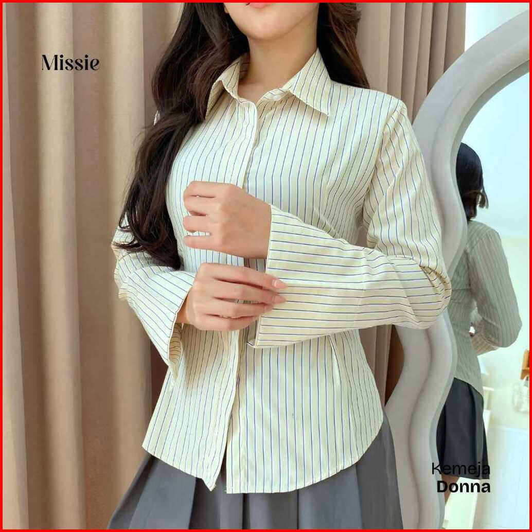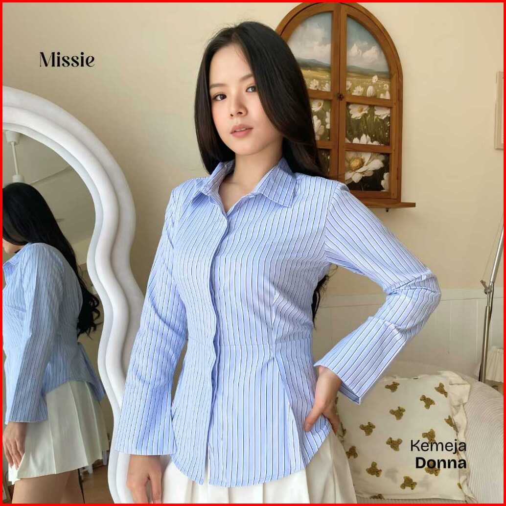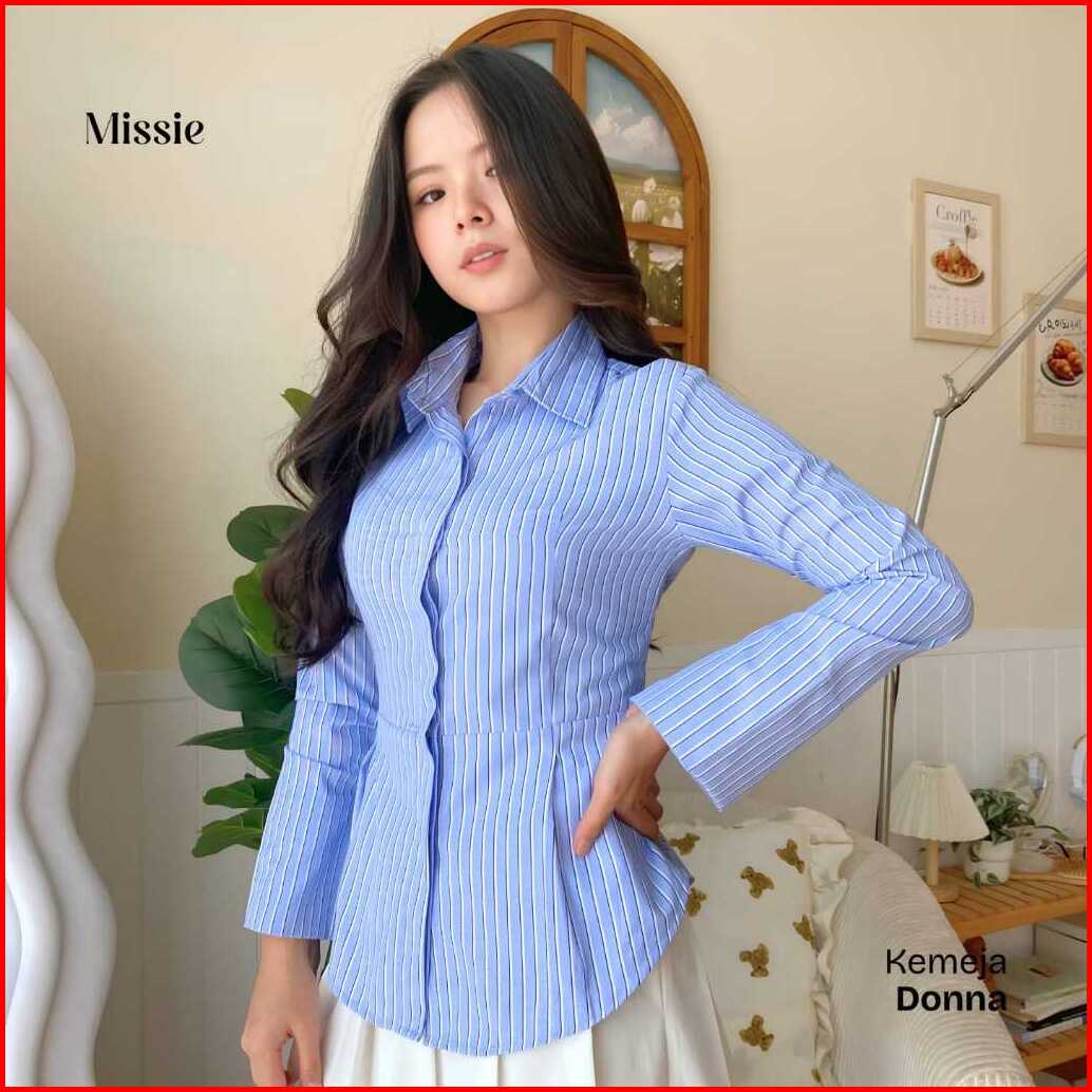 Missie - Dona Kemeja Slim Fit Wanita Motif Salur Tali Belakang