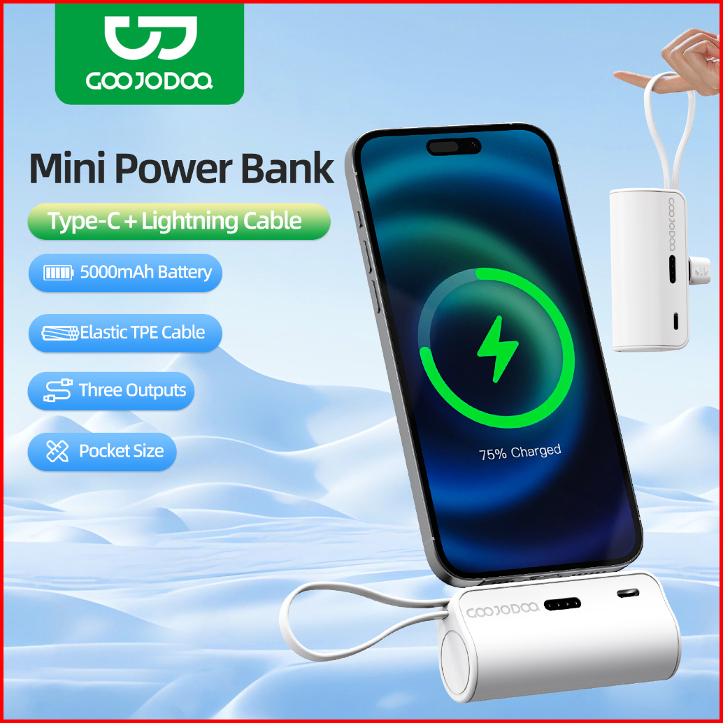 Goojodoq 5000mah Mini Powerbank For Iphone Android Phone Built In Cable Small Portable Type C Charge