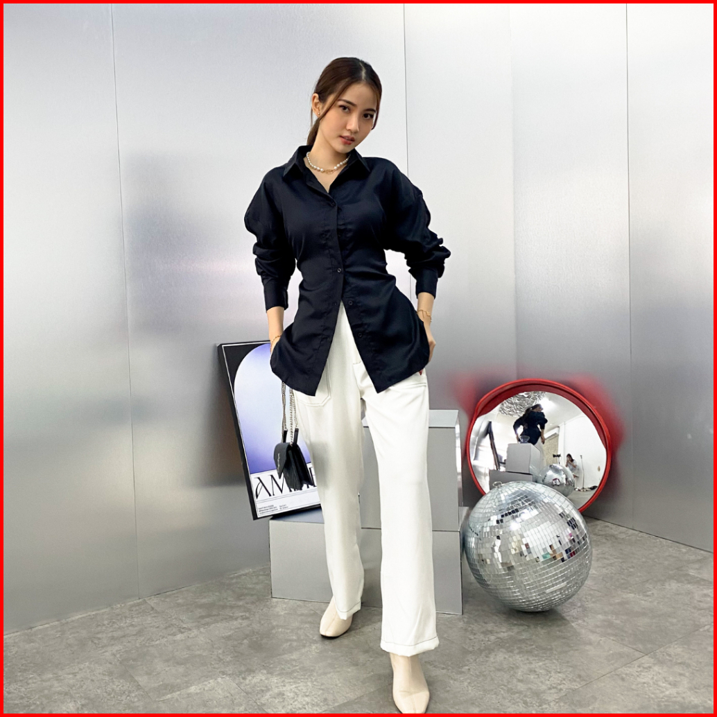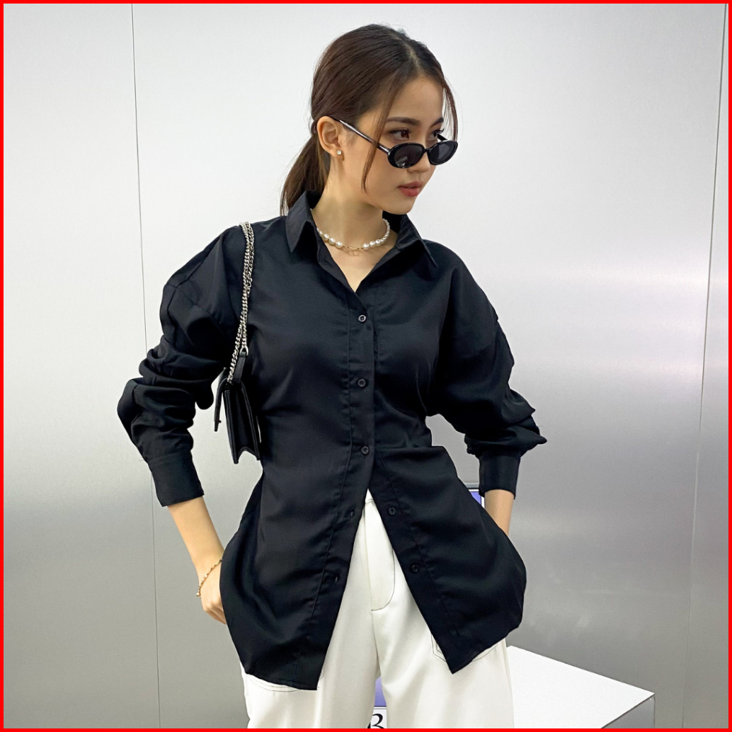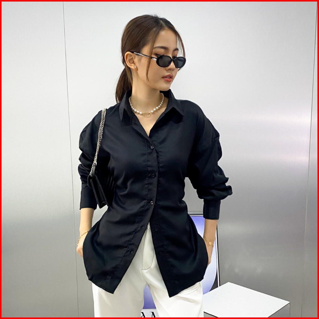 Tamara Fitted Shirt Kemeja Ramping Kantor Wanita Lengan Panjang Formal Casual Polos Halus - Eleonor