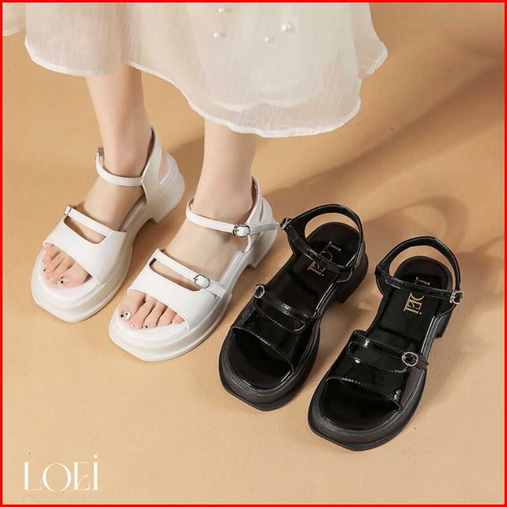 Sale Loei Mischa Sandal Tali Platform Wanita Fashion Wedges Slingback Sepatu Hak Tahu Strap Korean Style Casual Viral 09