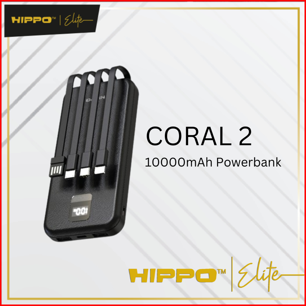 Hippo Powerbank Coral2 10000mah Black Output 2.4a Smart Detect Charger Flight Friendly Power Bank