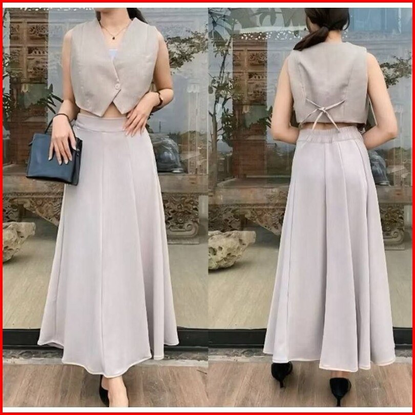Rok Scuba Premium Audy Skirt Korean Loose Maxi - Rok Panjang Wanita Anti Kusut Strect