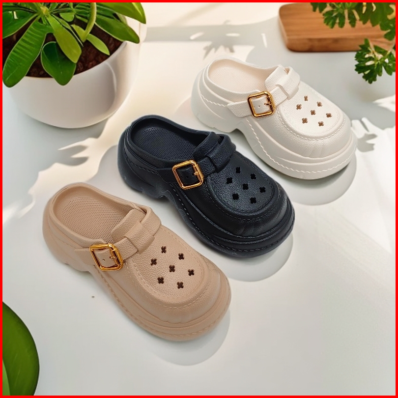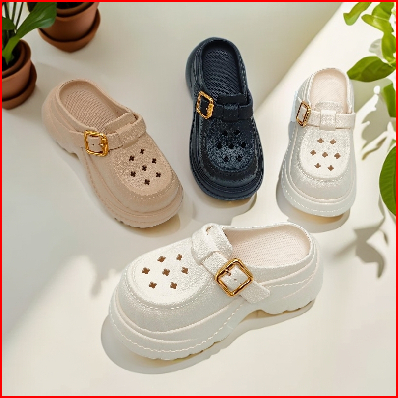 Evevdcool Sandal Baim Wanita Korea Sandal Wanita Kekinian Sandal Kodok Wanita Tinggi Sandal Clog Wanita