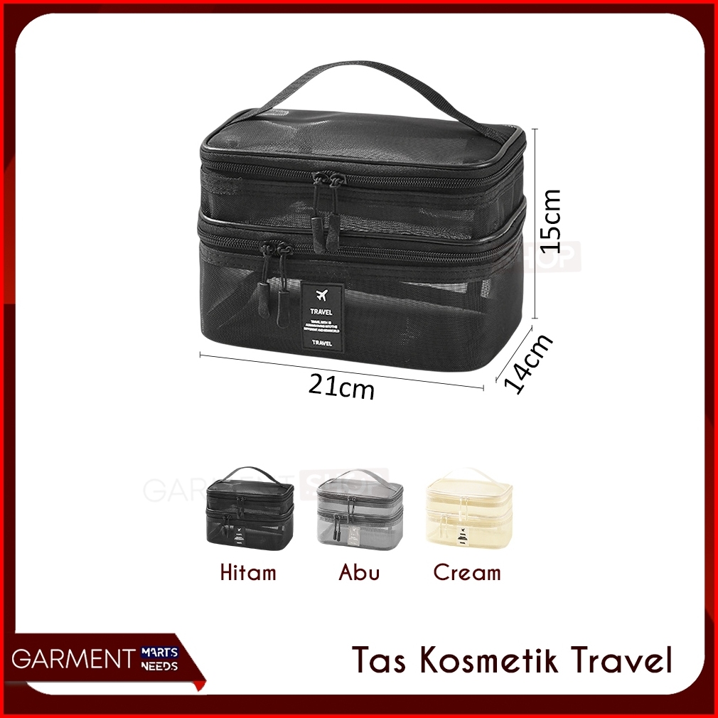 Traveldob - Tas Kosmetik 2 Tingkat Organizer Makeup Skincare Transparan Mesh Portable Pouch Handle Praktis Elegant