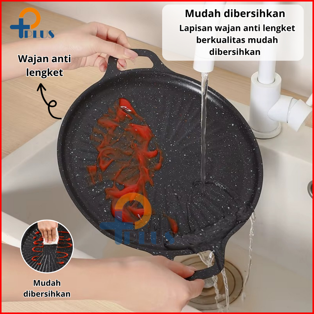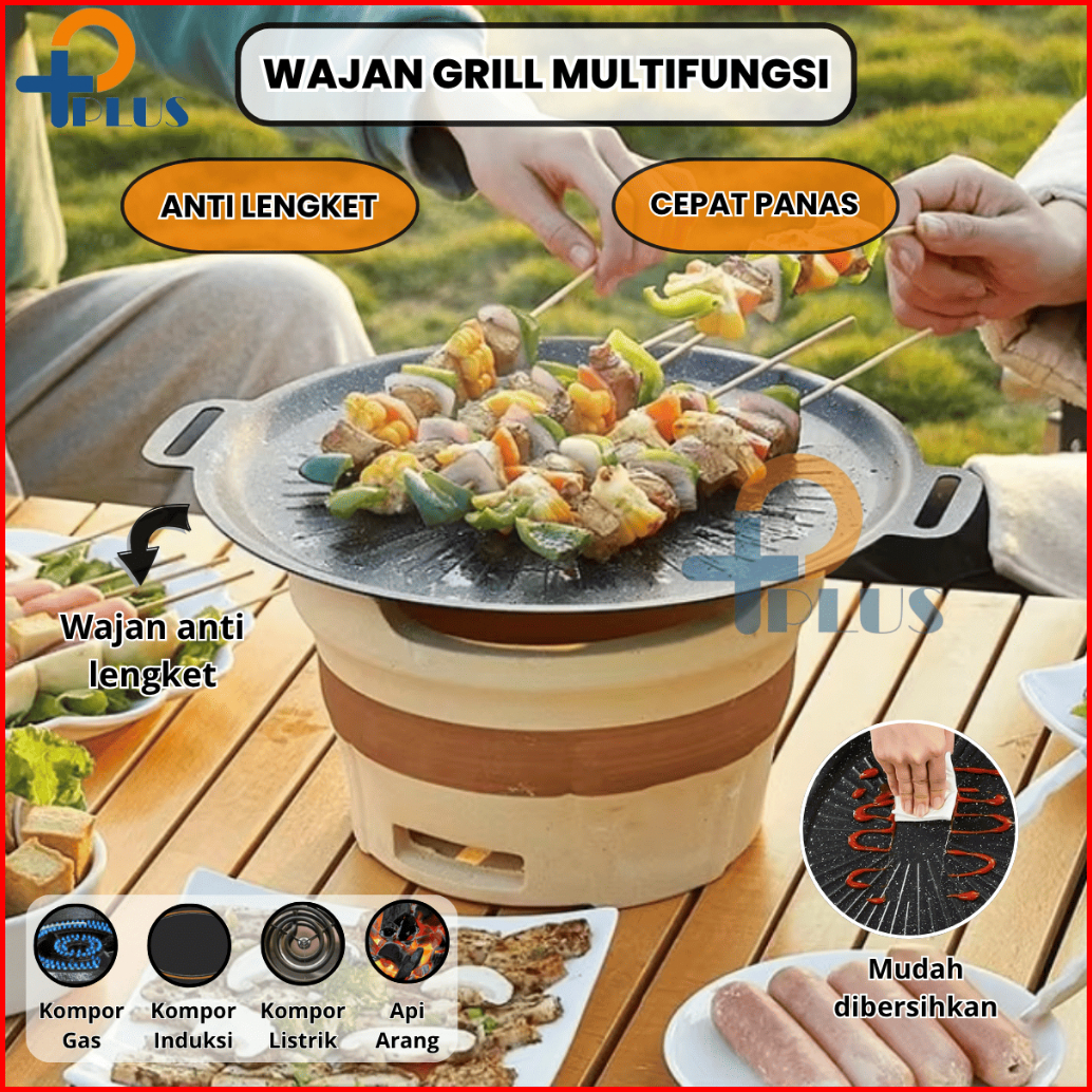 Pplus Alat Grill Panggang Bbq Bulat Kompor Wajan Pemanggang Bbq Grill Pan Anti Lengket Serbanguna 34cm Protable