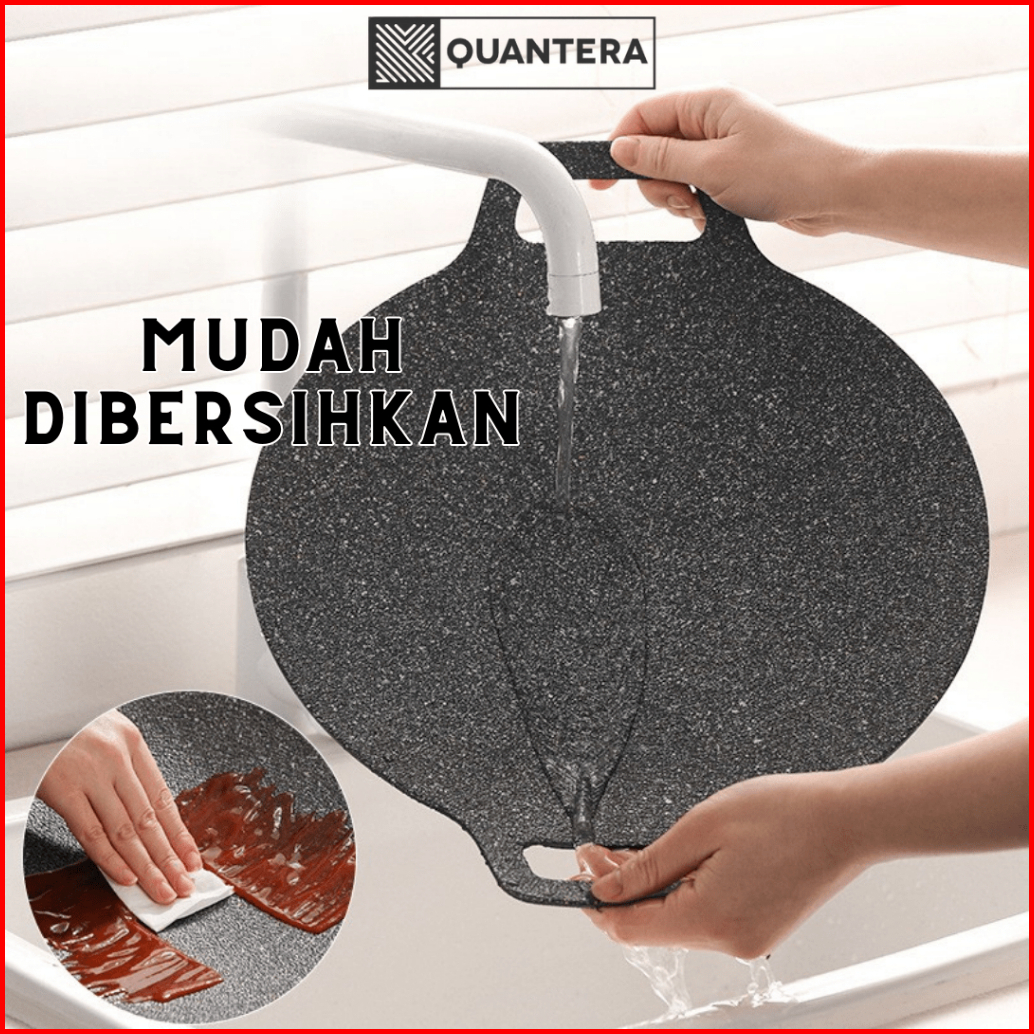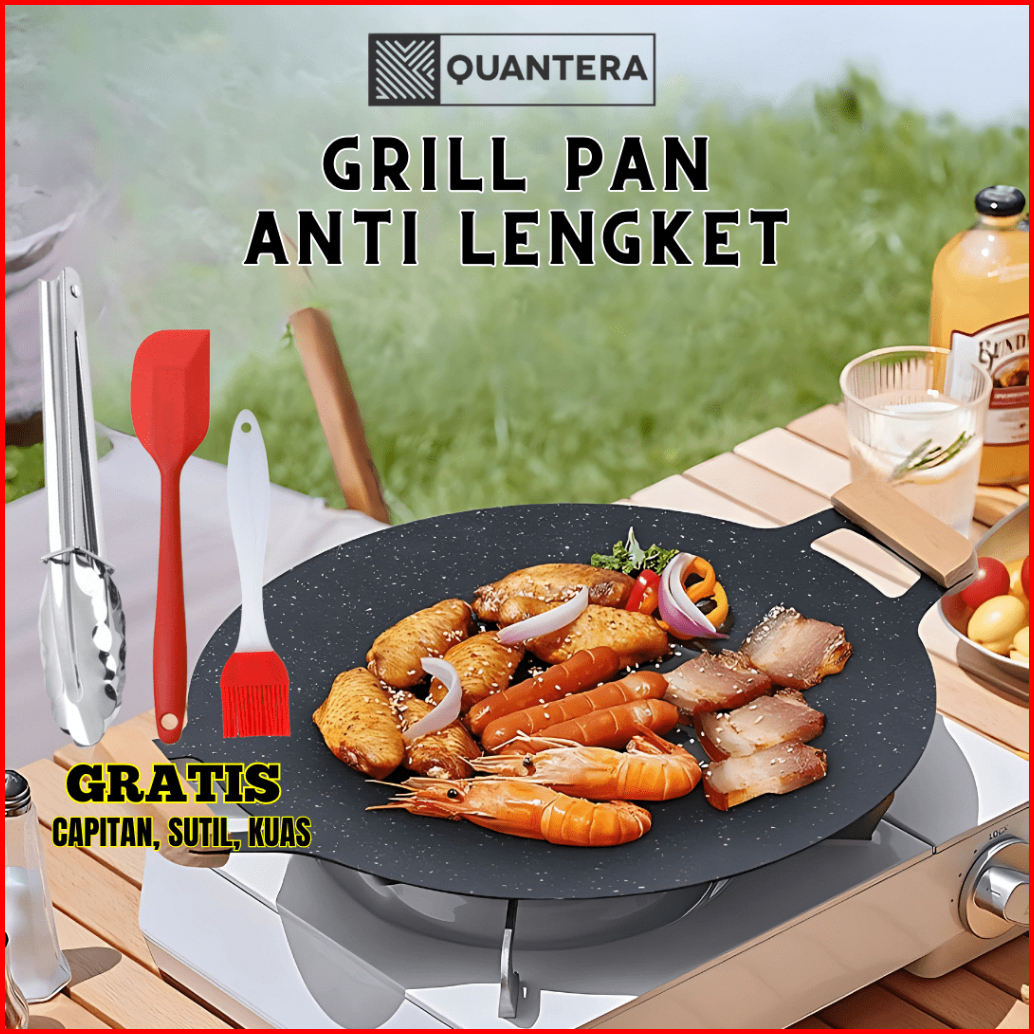 Grill Pan 38 Cm Wajan Pemanggang Bbq Anti Lengket Penjepit Spatula Kuas Gratis