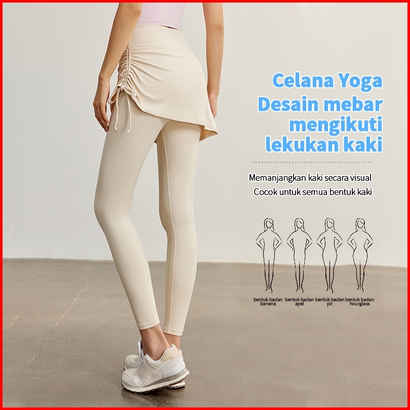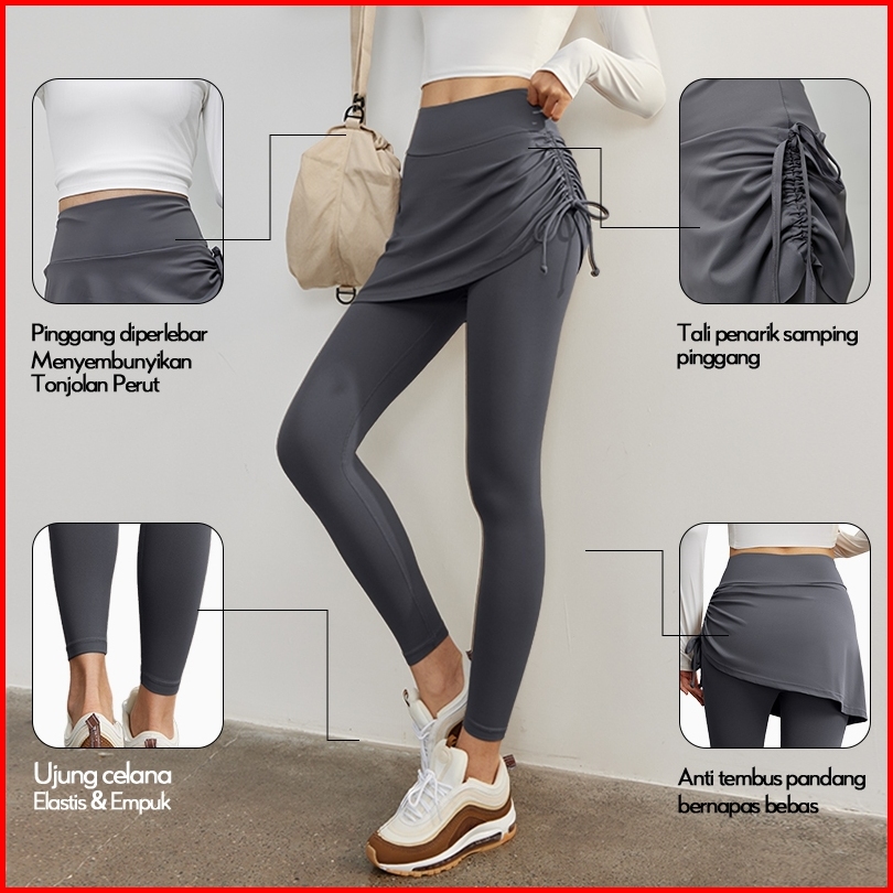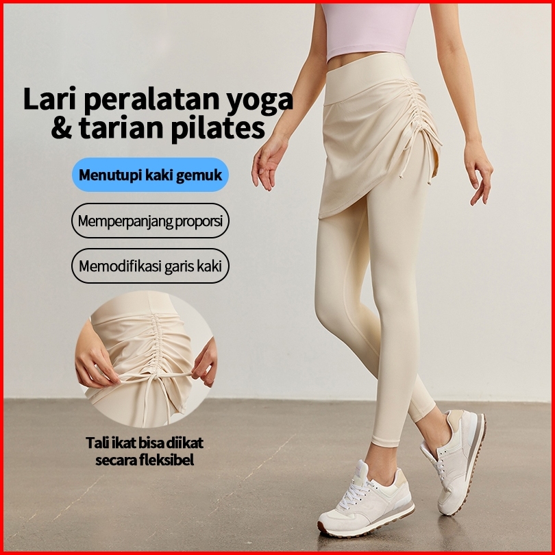 Dora Wanita Celana Rok 2-in-1 Stylish Bahan Elastis Empuk Tali Ikat Fleksibel Ideal Untuk Yoga Pilates Gaya Kasual Haria