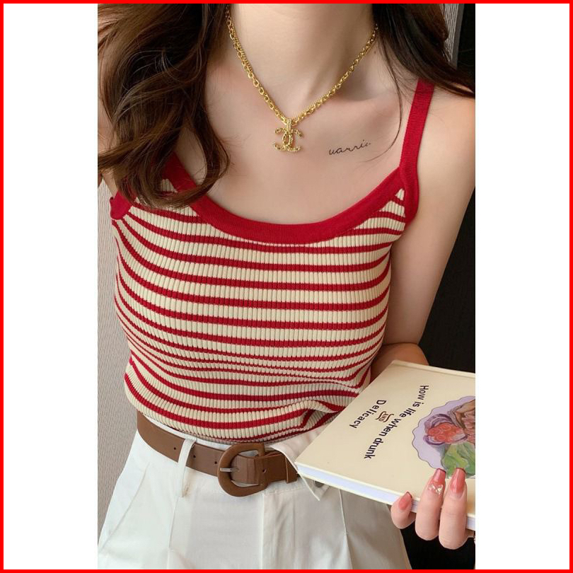 Tanktop Tali Knit Rajut Tank Top Tali Salur Tank Top Stripe