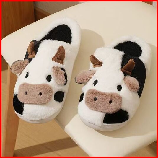 Sandal Bulu Bermotif Sapi Sandal Dalam Ruangan Yang Hangat