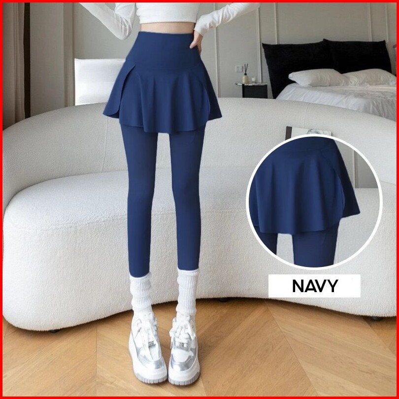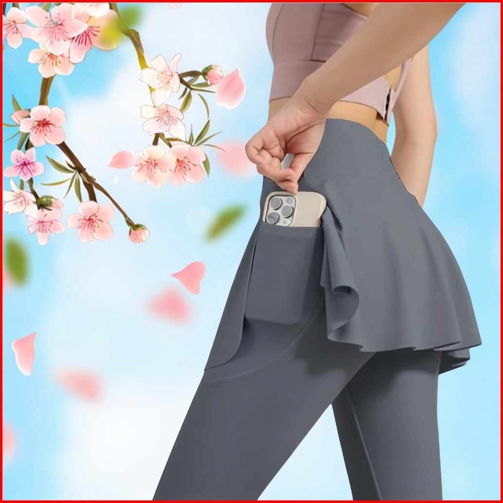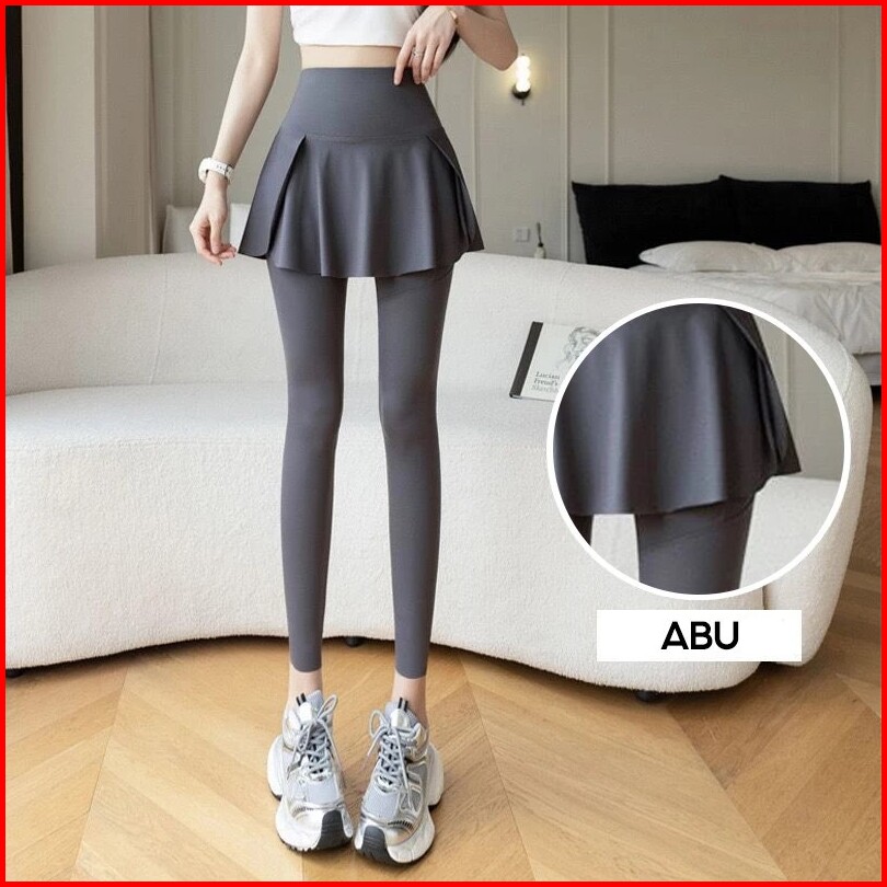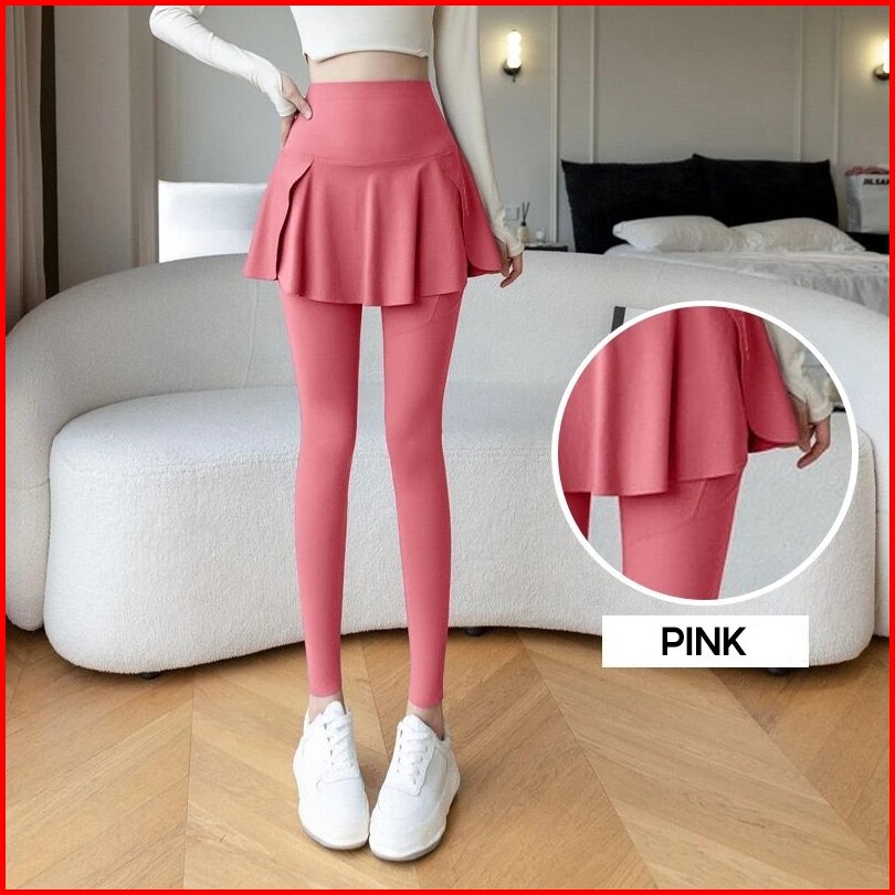 Rok Yoga Wanita 2-in-1 Dengan Kantong Adem Legging Rok Olahraga Wanita Rok Legging Celana Gym