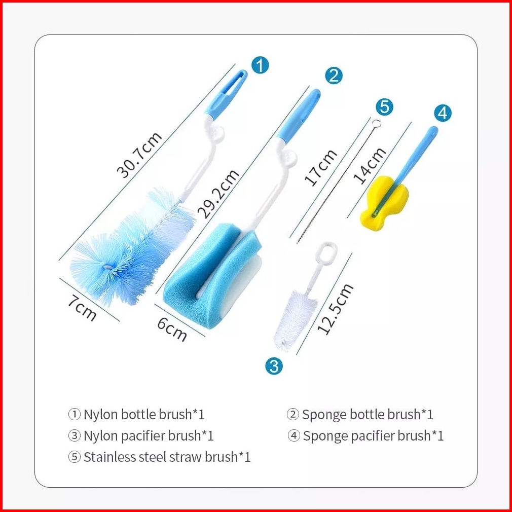 We Sikat Spons Pembersih Botol Susu Dot Bayi 5pcs Set Sikat Botol Sponge 5 In 1 Cuci Dot Sikat Dot Empeng