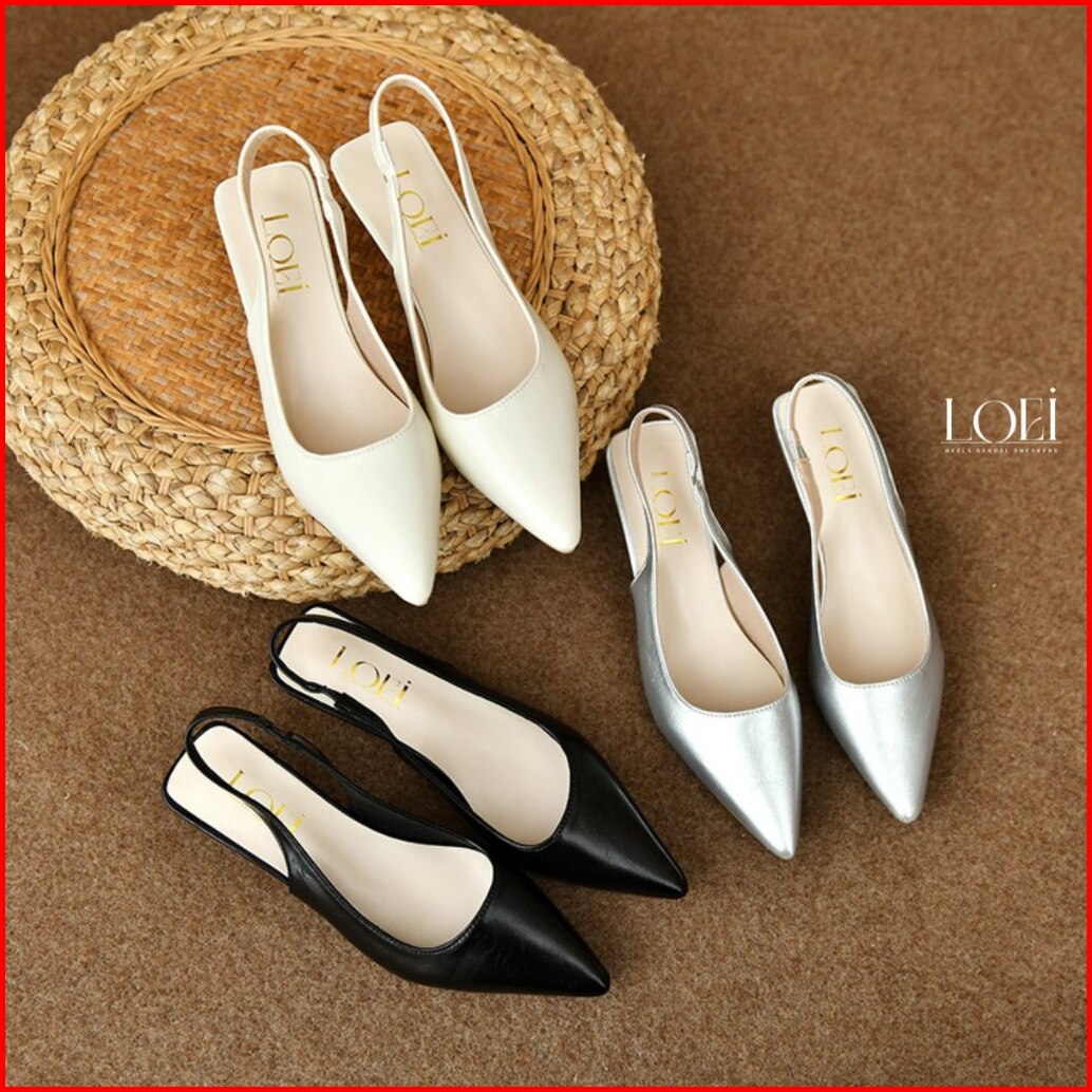 Loei Serena Heels Casual Wanita 5 Cm Slingback Elegant Simple Sepatu Kerja Kantor Lancip Polos 1718