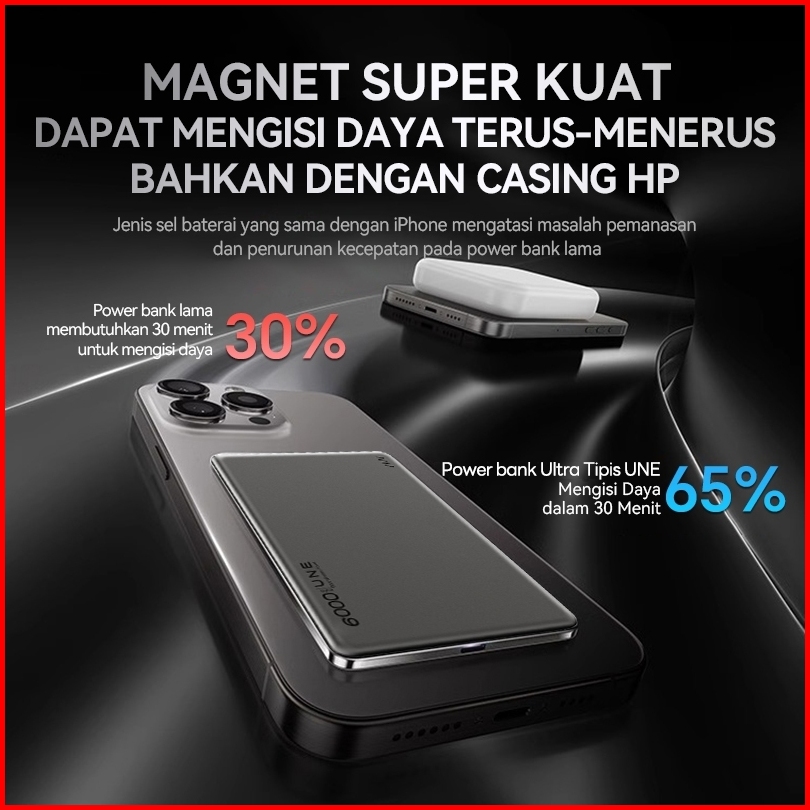 3c Garansi 2 Tahun Une 12000mah Powerbank Fast Charging Qi2 Wireless Pd20w Power Bank Mini Nirkabel Untuk Iph Type C