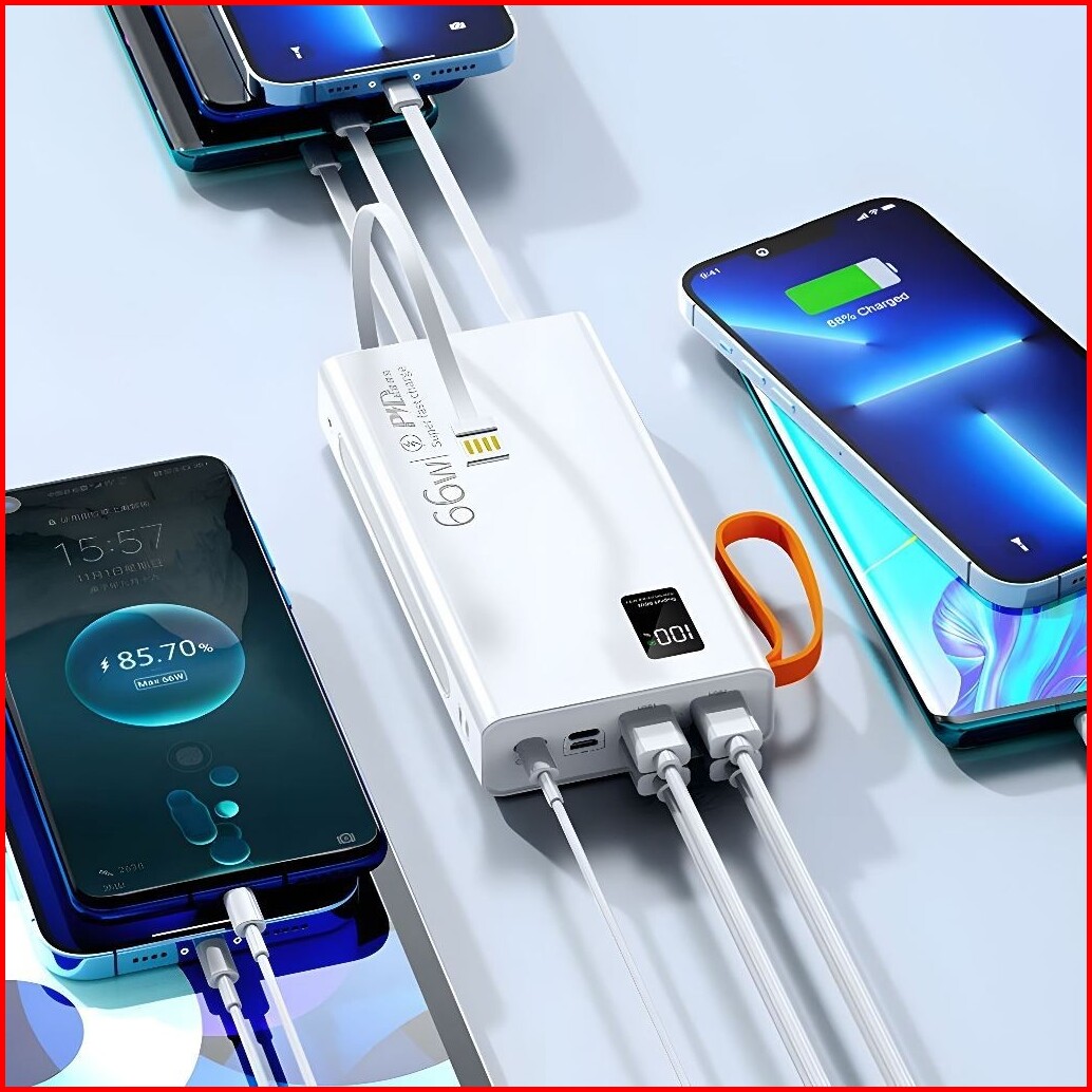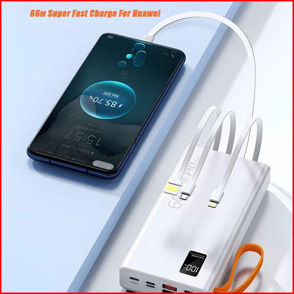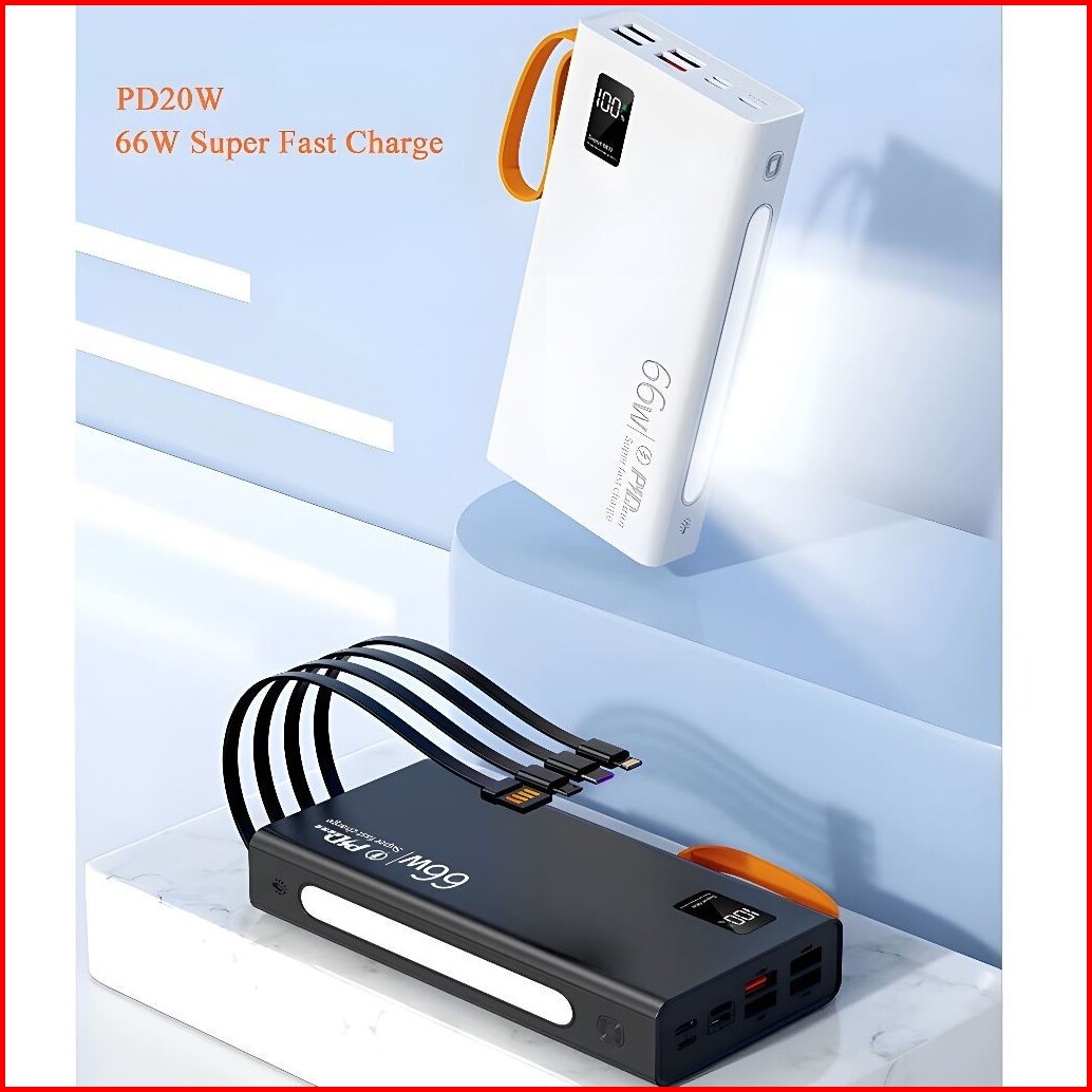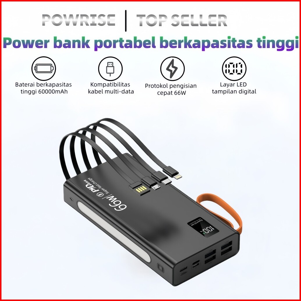 Powrise Powerbank 60000mah Fast Charging Led Display With Kabel Data Type C Micro Usb