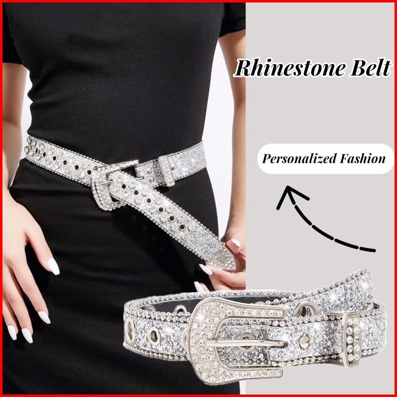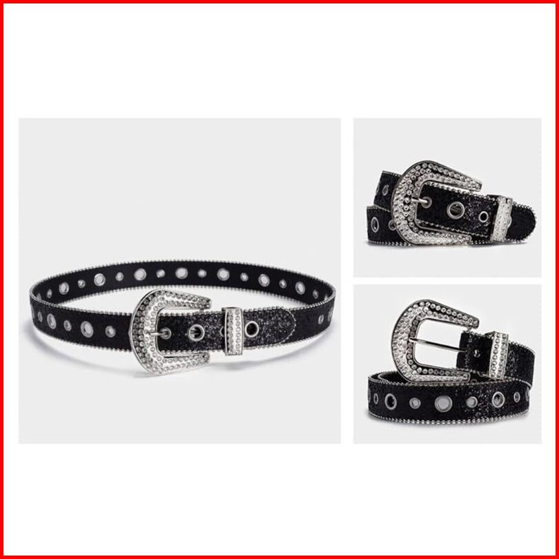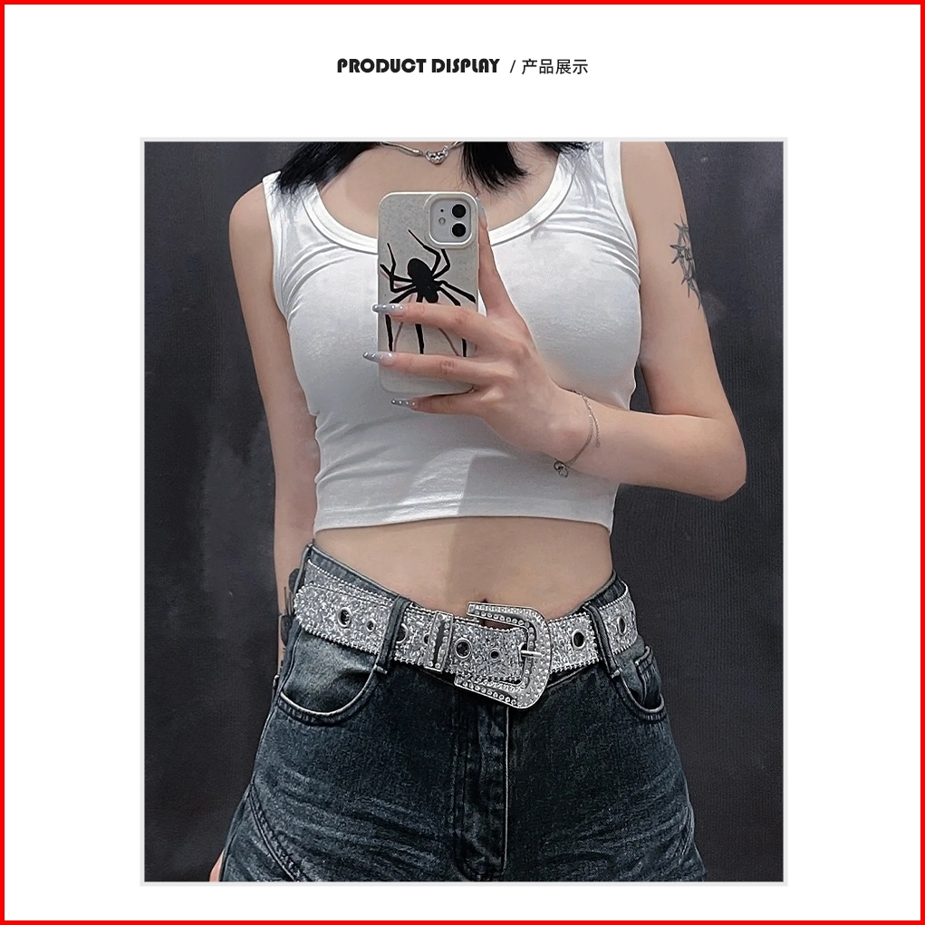 Ikat Pinggang Wanita Belt Wanita Kelip-kelip Kristal Lubang-lubang Keren Model Kekinian Korean