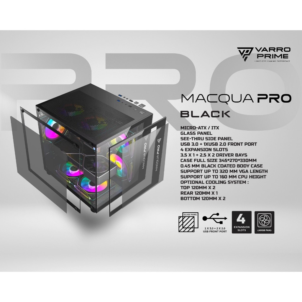 CASING VARRO MACQUA S2 BLACK INCLUDE 3 FAN
