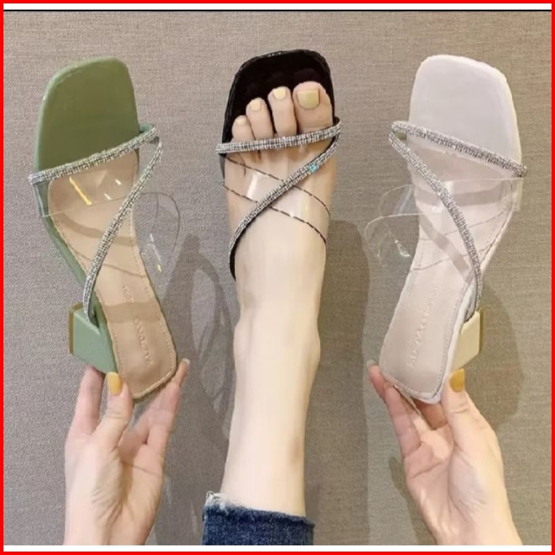 Sendal Wanita Kekinian Heels Hak Tahu 5 Cm. Mika Mutiara