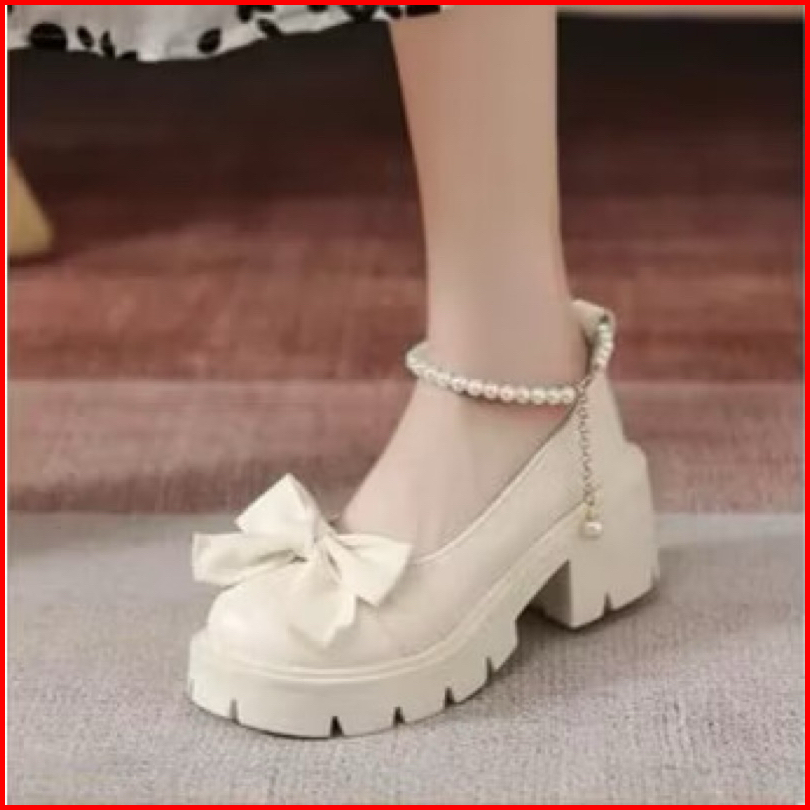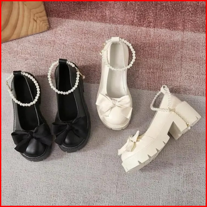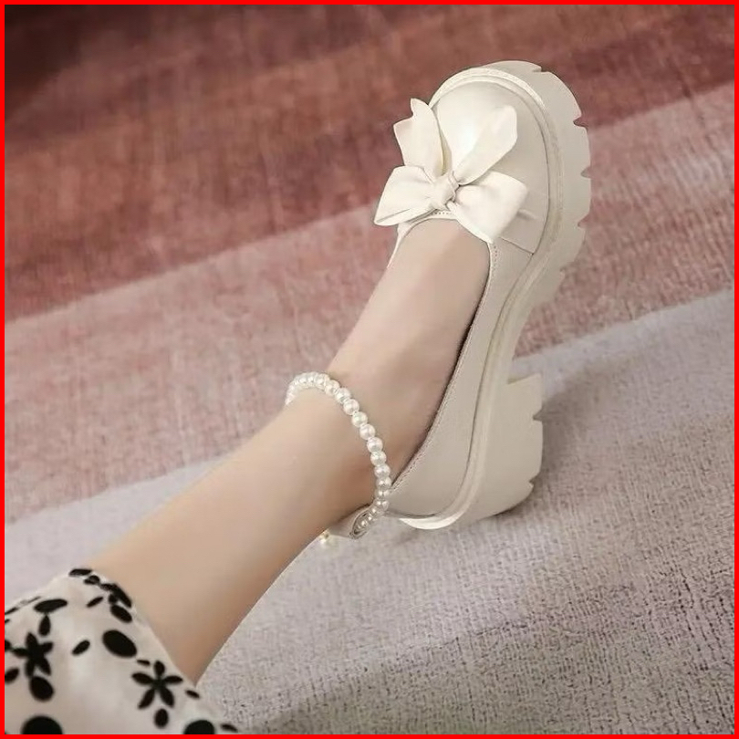 Baho - Tamy Wedges Platform Shoes Wanita Lolita Mary Janes Mutiara Japanese