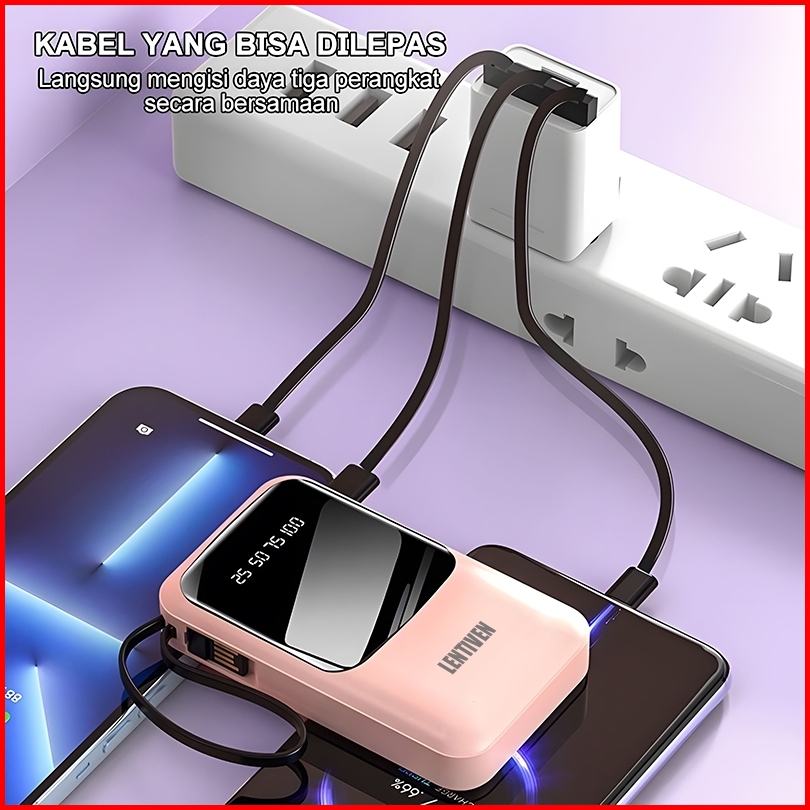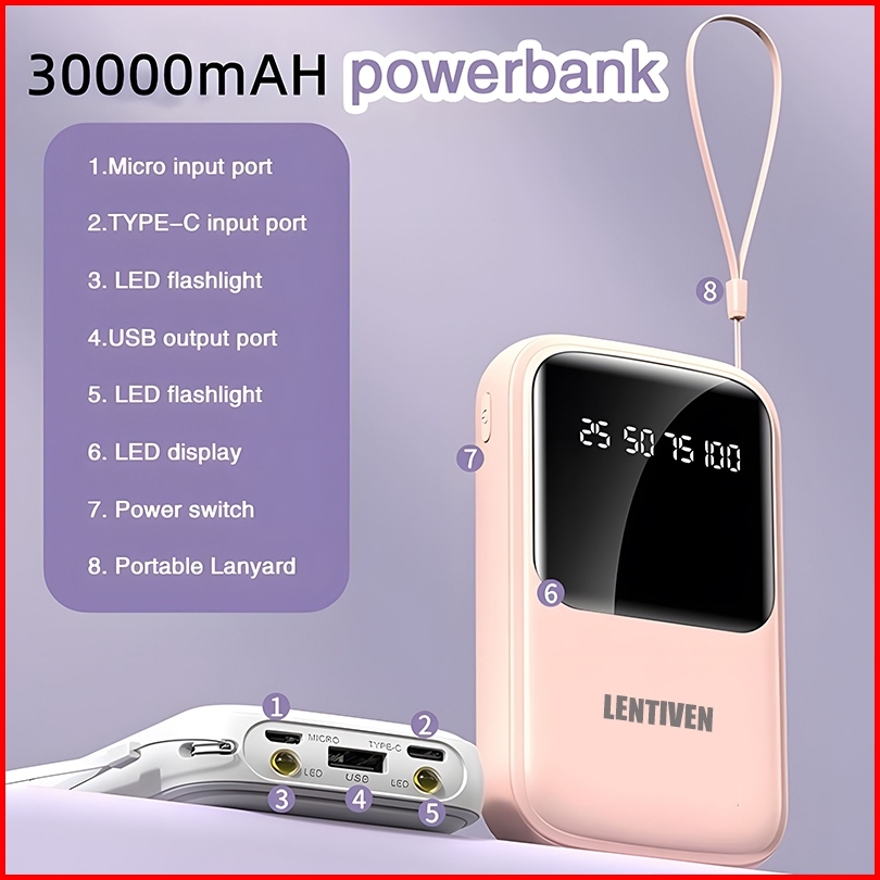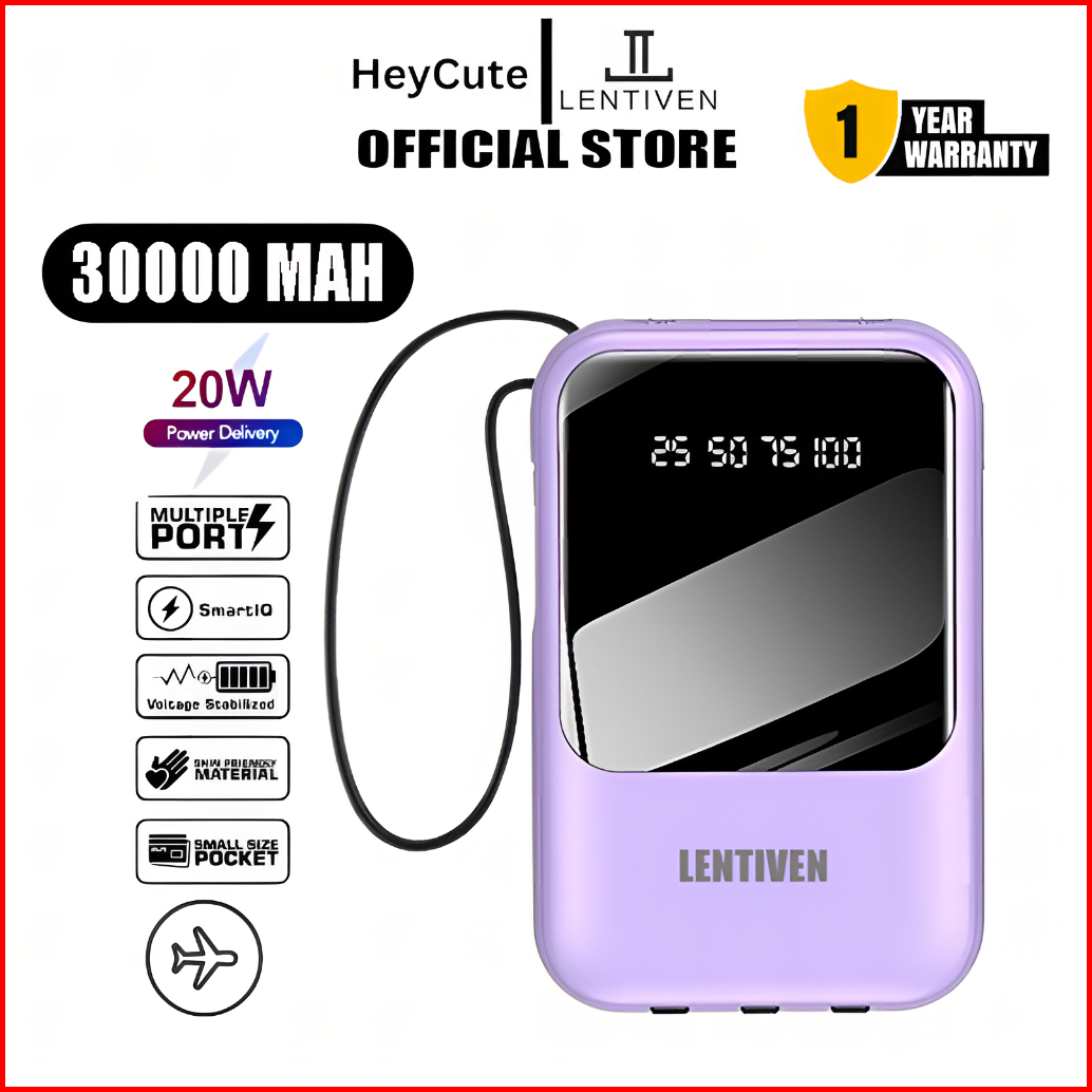 Heycute Lentiven Powerbank 30000 Mah Mini Size With 4 Cable Fast Charging Led Display