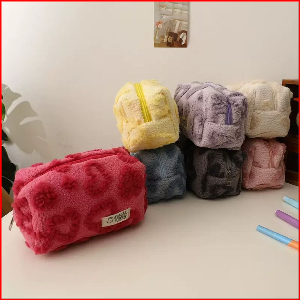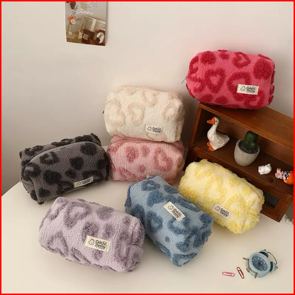 Pinky Row - Love Rovie Fur Make Up Pouch - Tempat Alat Rias - Skincare Pouch - Pouch - Tempat Pensil - Kotak Pensil