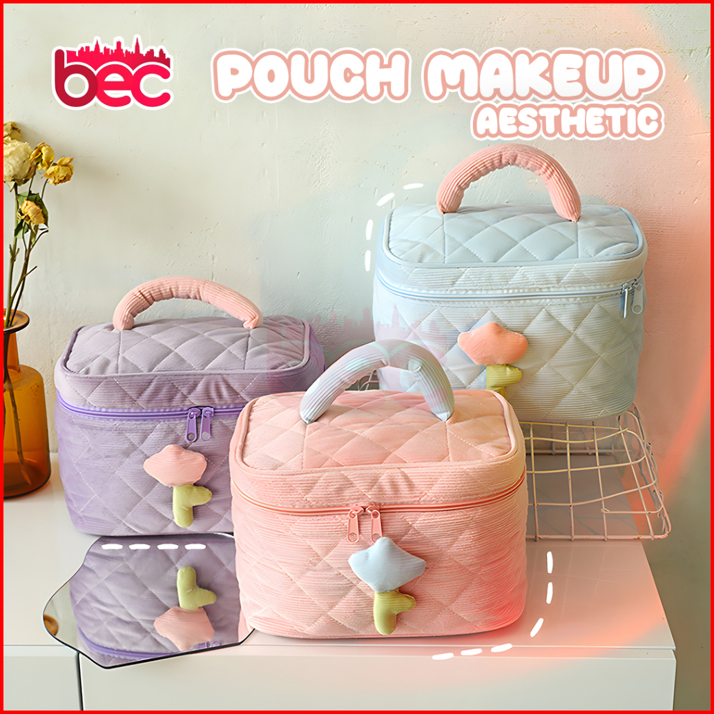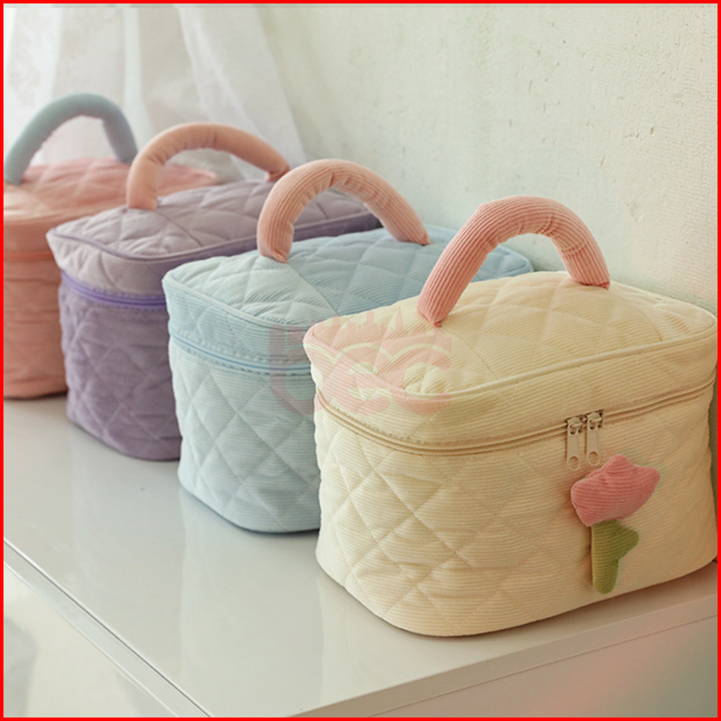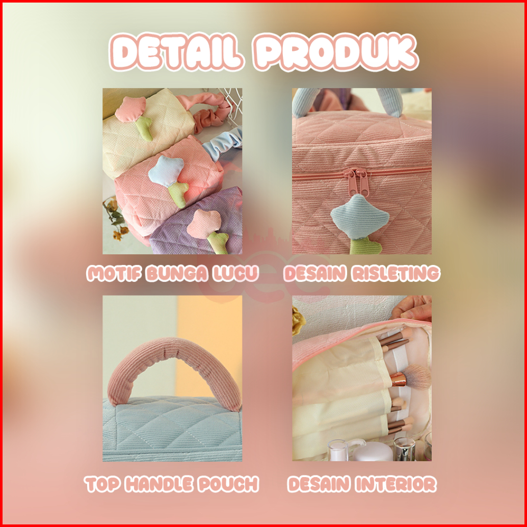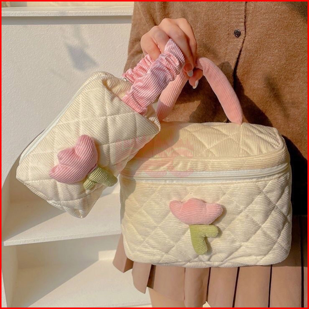 Bec Pouch Makeup Aesthetic Tulip Flower Handle Paste Tas Kosmetik Dan Kuas Brush Make Up Pouch Besar Tas Kosmetik Cordur