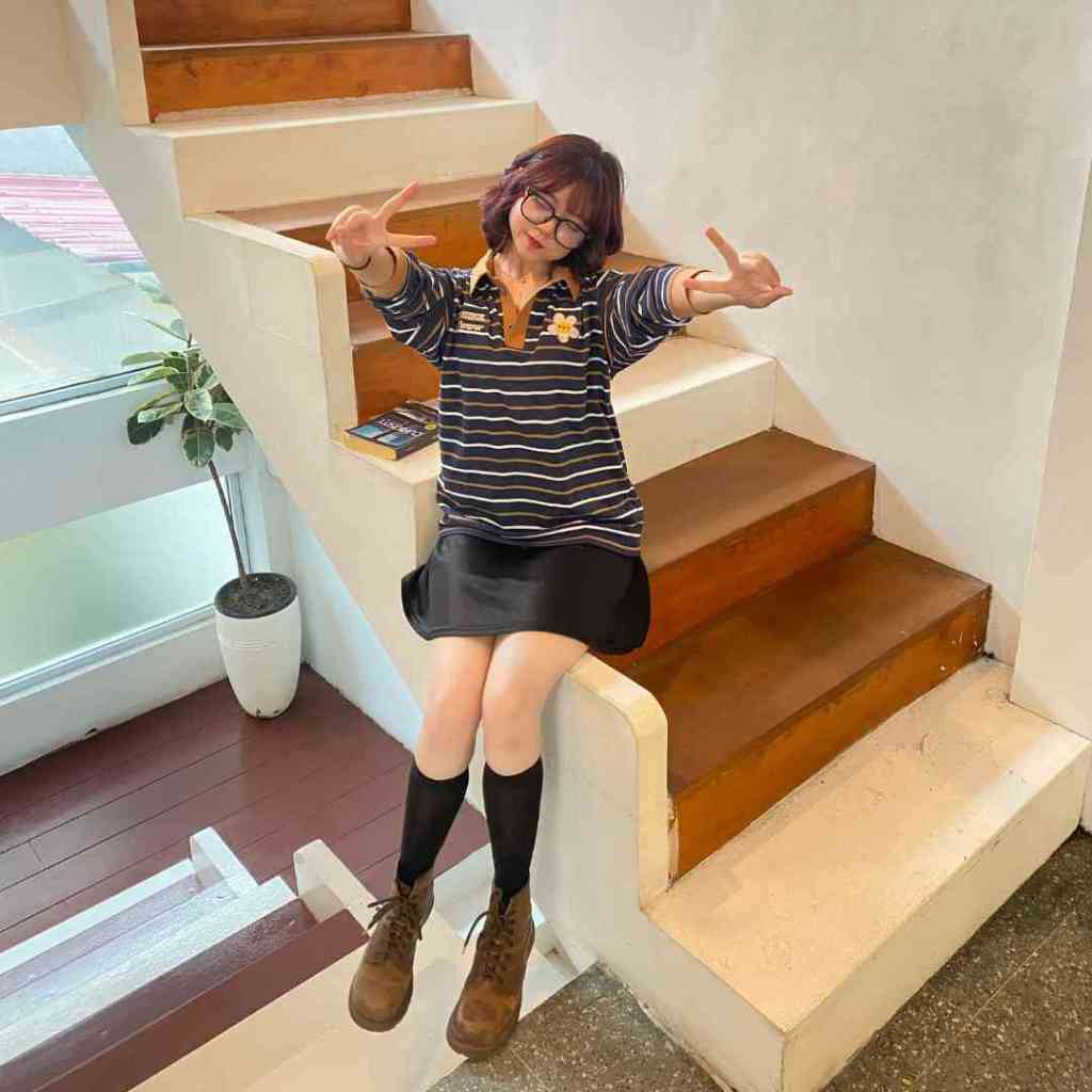 Kickchick Longsleeve Polo Stripe Not Flower Embroidery Mocca | Kaos Atasan | Polo Lengan Panjang Stripe | Kc-Ls-Ps-Strip