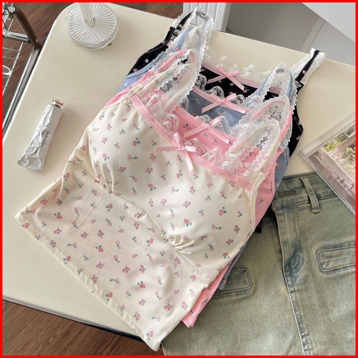 Wingalery Tanktop Bra Wanita Pita Motif Renda Tanktop Croptop Pads Wanita Bahan Adem Premium 1211
