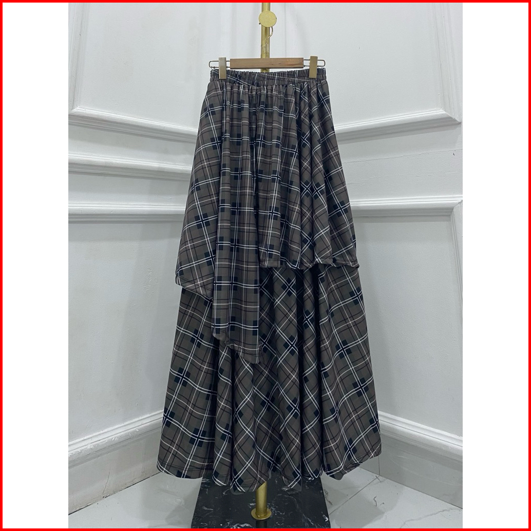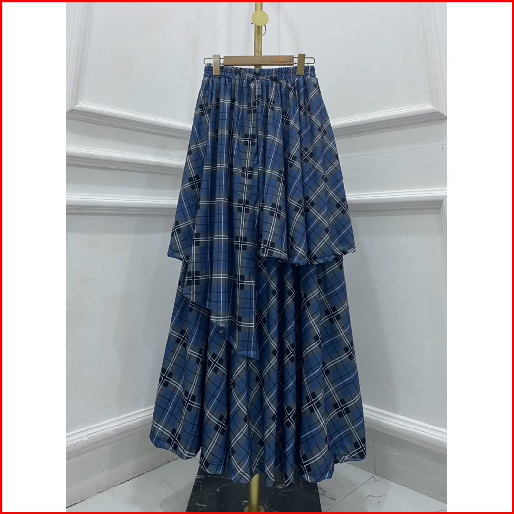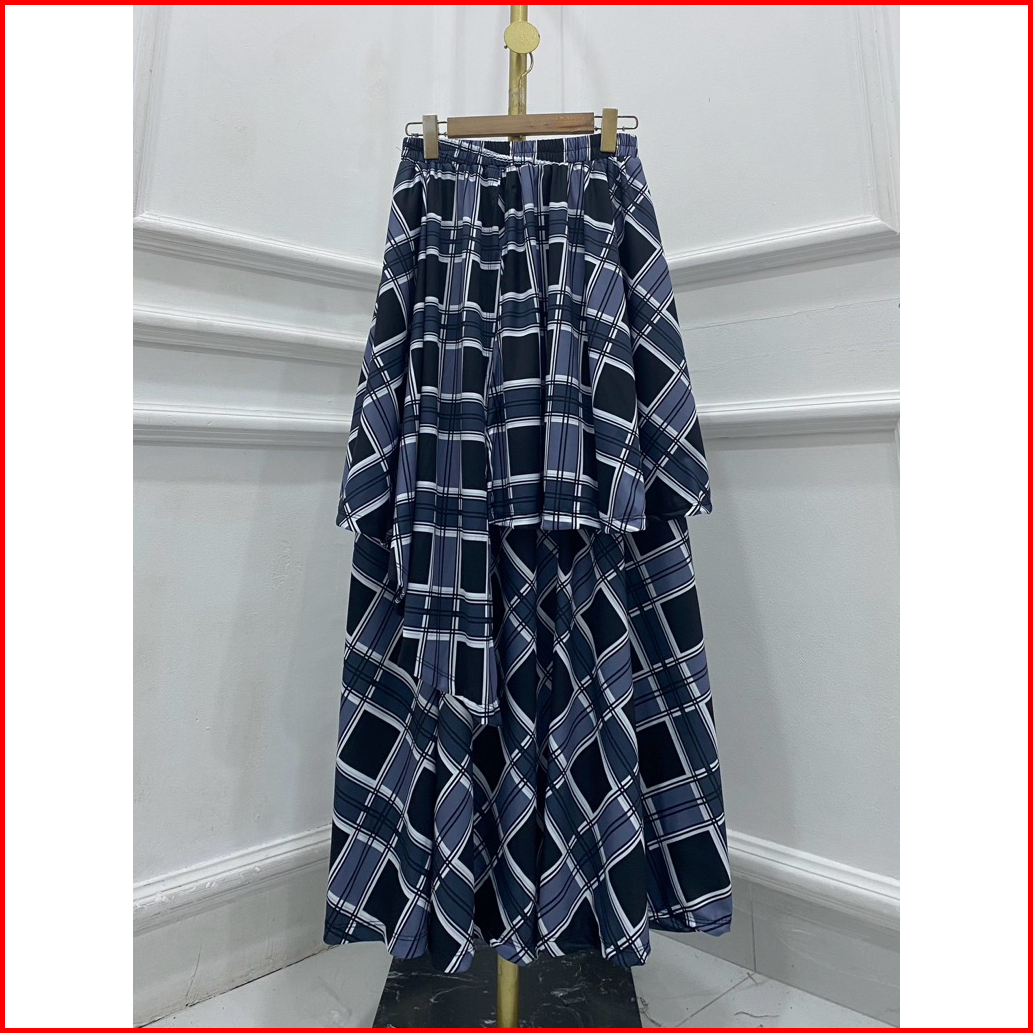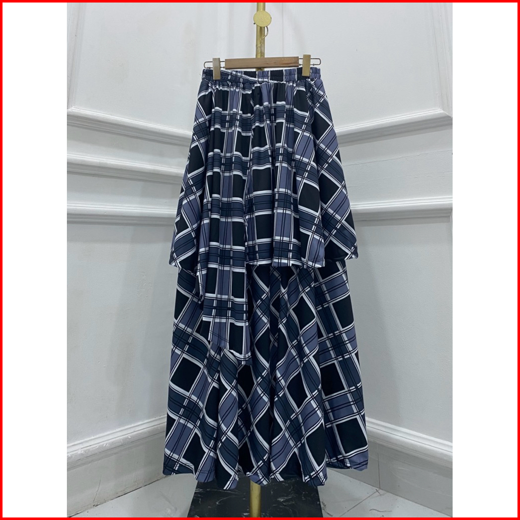 Rok Kotak Tartan Layer Motif Asimetris Model Terbaru Murah Jumbo Karet Mayung Flare A Line