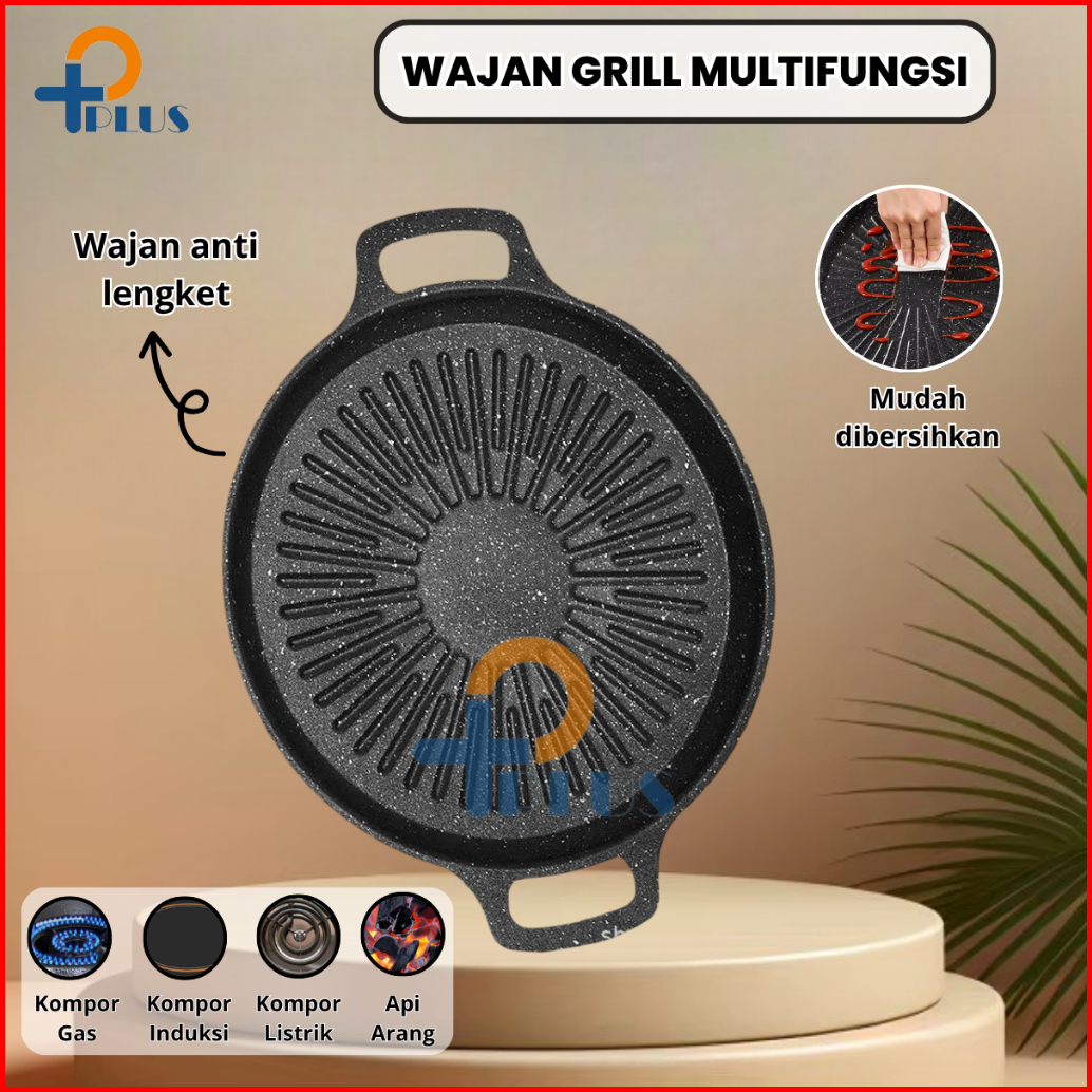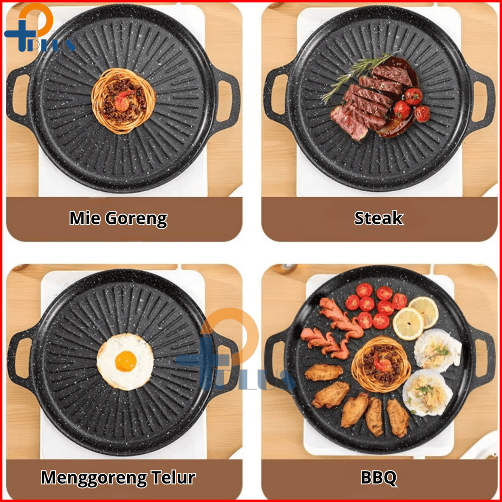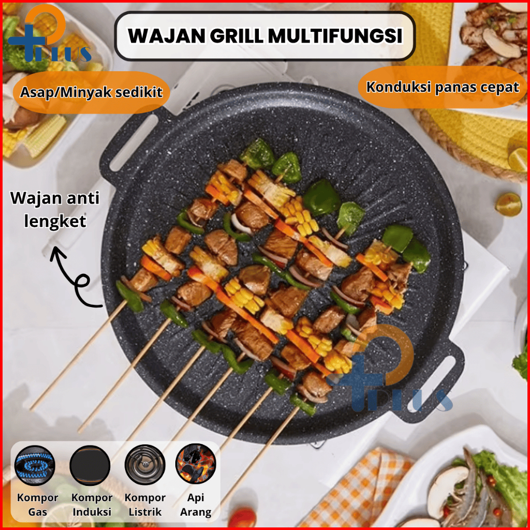 Pplus Alat Grill Panggang Bbq Bulat Kompor Wajan Pemanggang Bbq Grill Pan Anti Lengket Serbanguna 34cm Protable