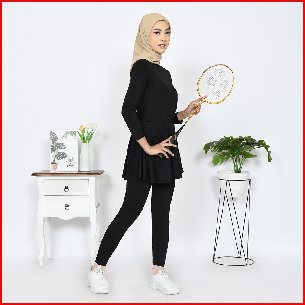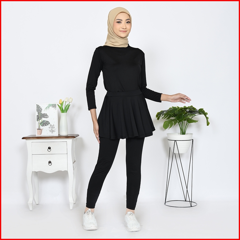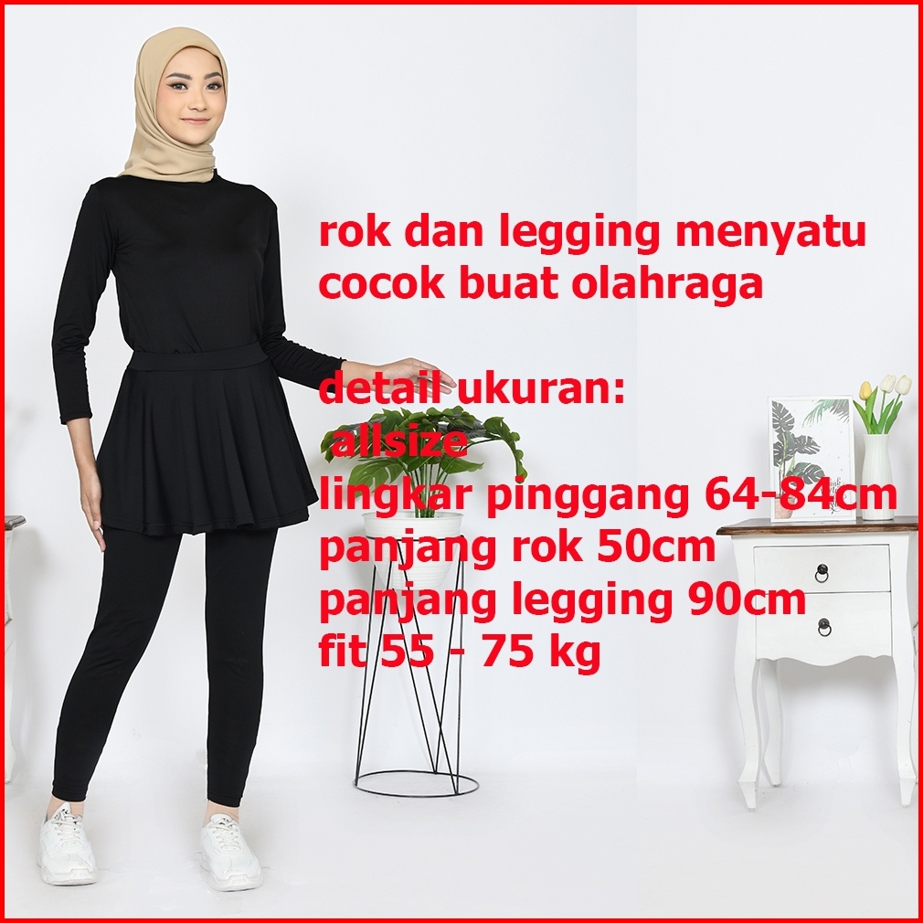 Rok Legging Olahraga Celana Rok Senam Zumba Wanita Sport Gym Legging Skirt Renang Lari Aerobik Yoga Menyatu Bahan Spande