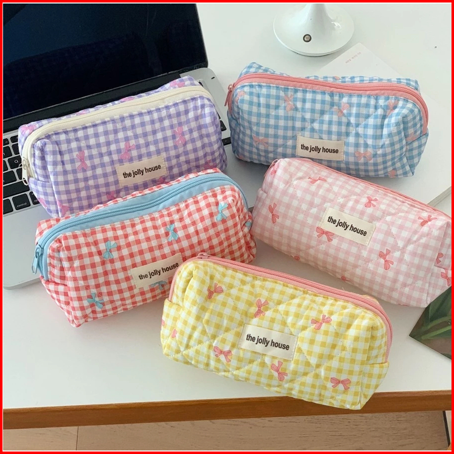 Pouch Makeup Pink Bow Coquette Tempat Pensil Multifungsi Tas Kosmetik Bag Travel Size Jolly Make Up Pouch Travel Organiz