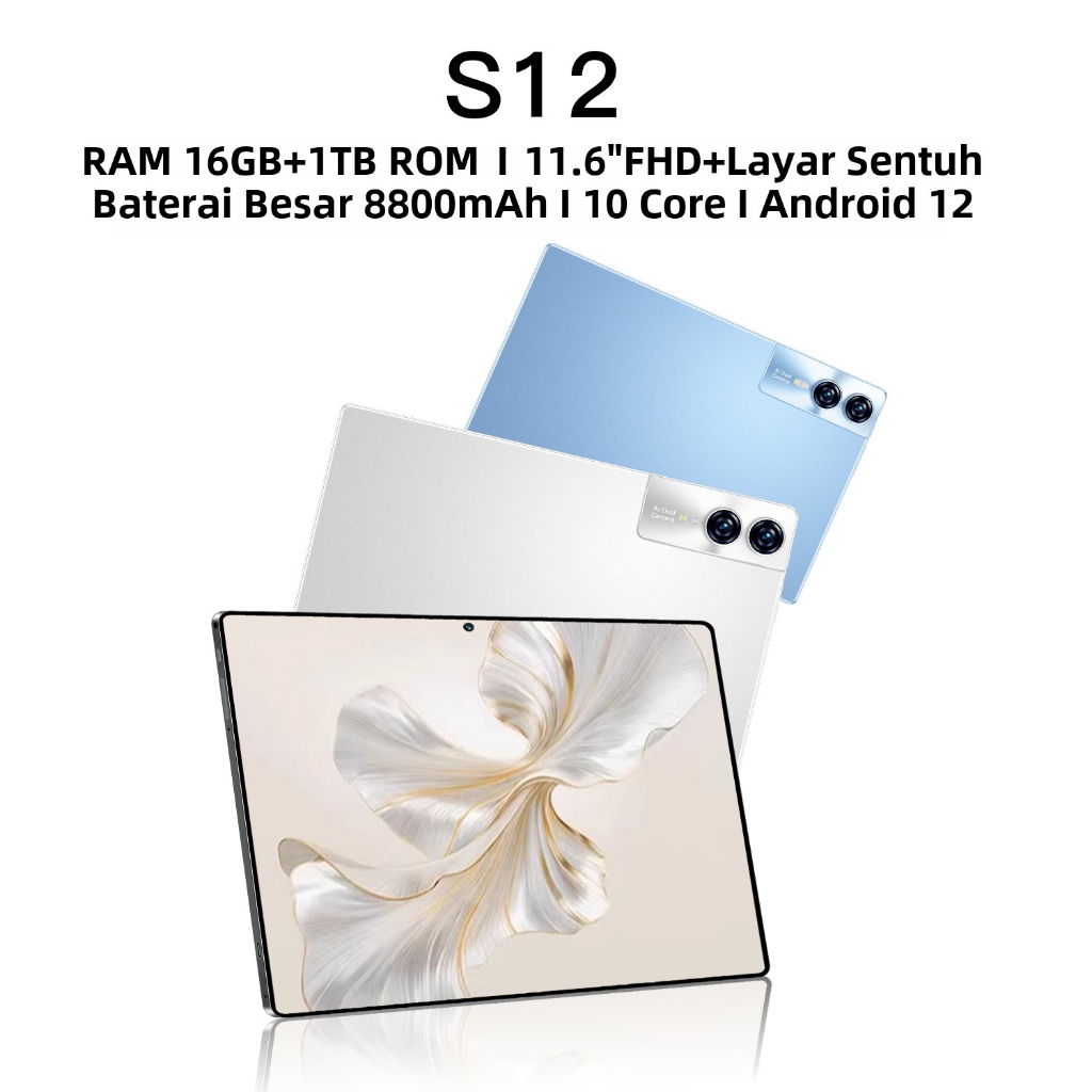 KLOURUS Tablet S12 | IPS 11.6" | Tablet Murah untuk Belajar,Gaming, Kerja & Hiburan | 5G Dual SIM, WiFi Tablet Anak An