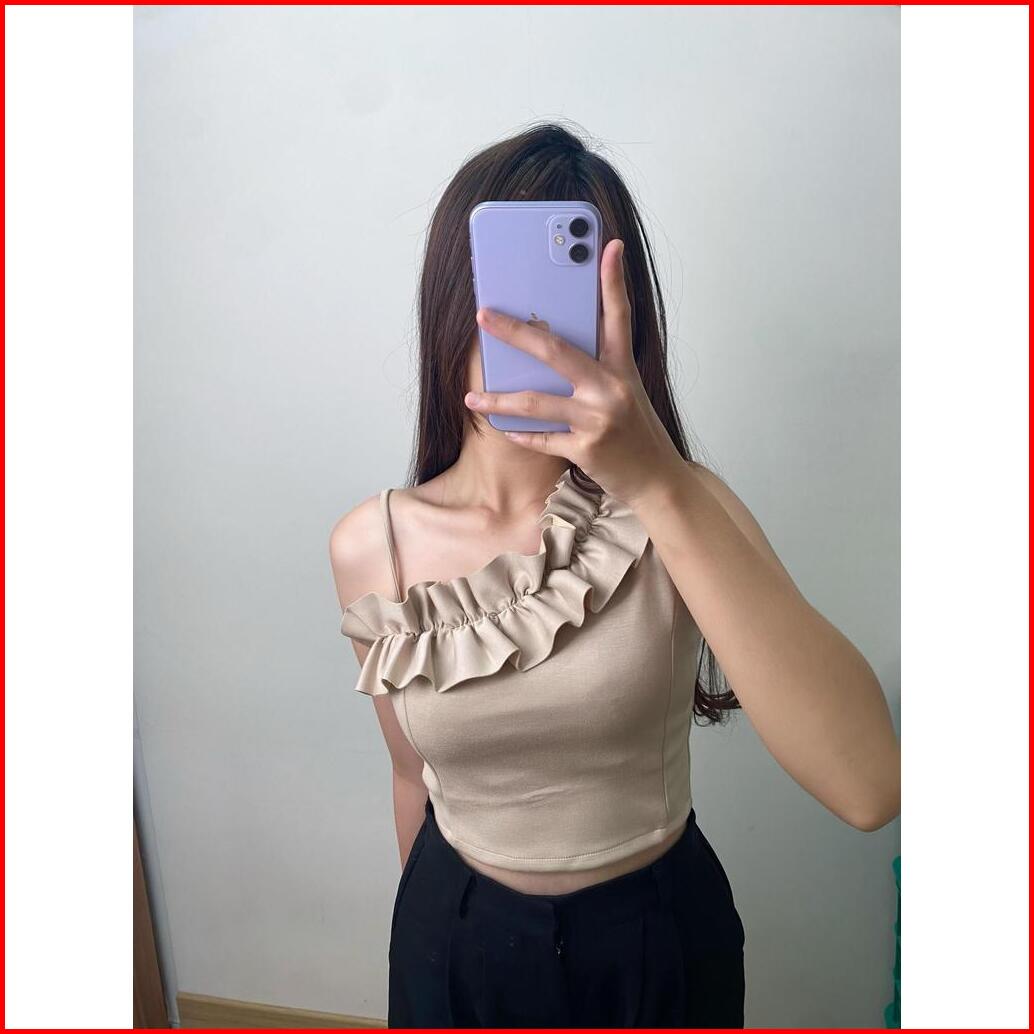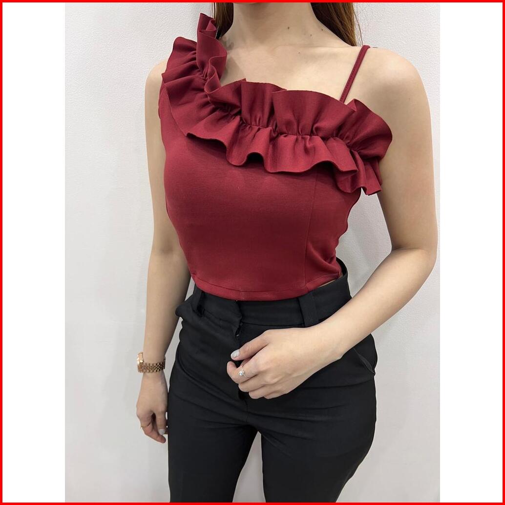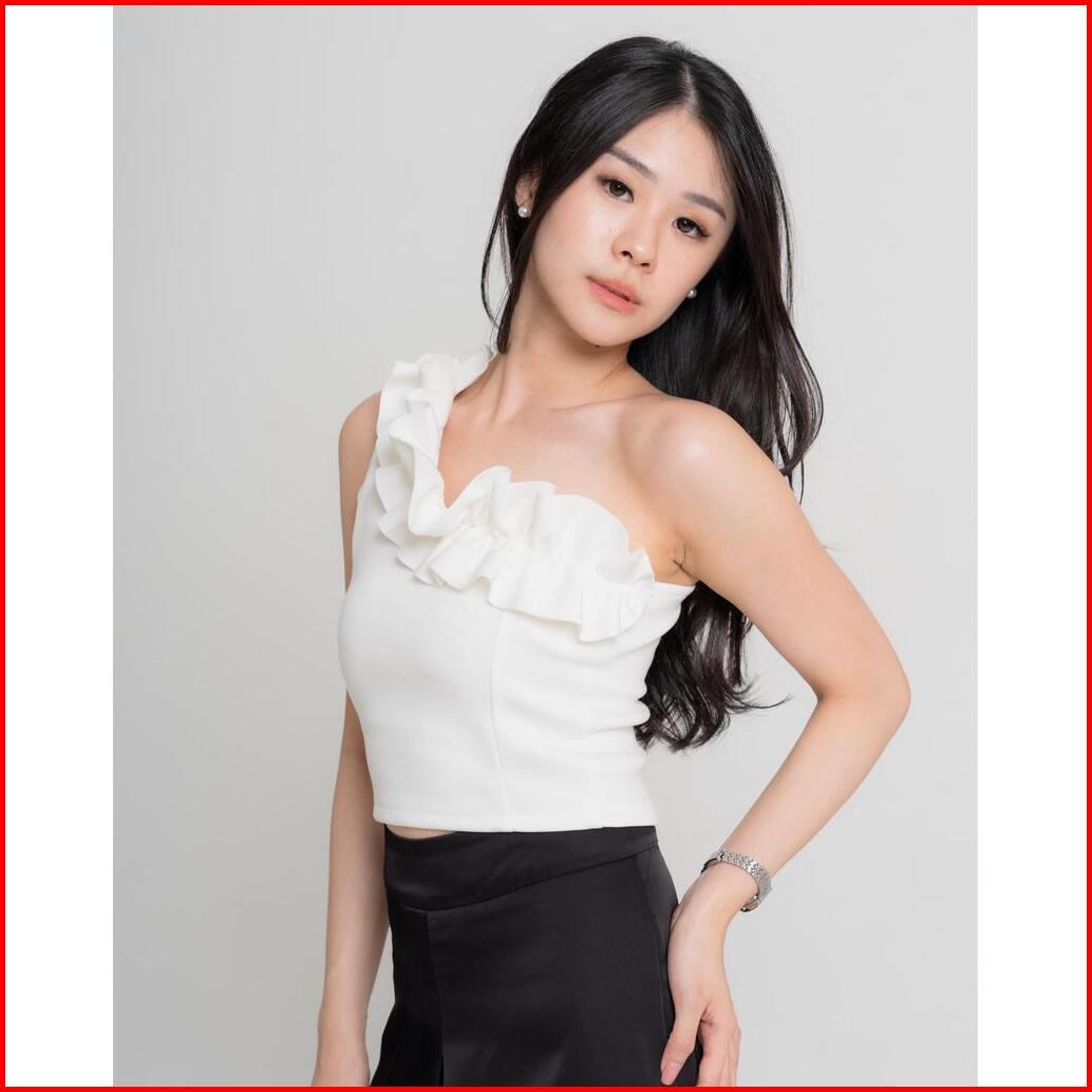 Evaluna Ruffle One Shoulder Scuba Tanktop Flora- 1.0404