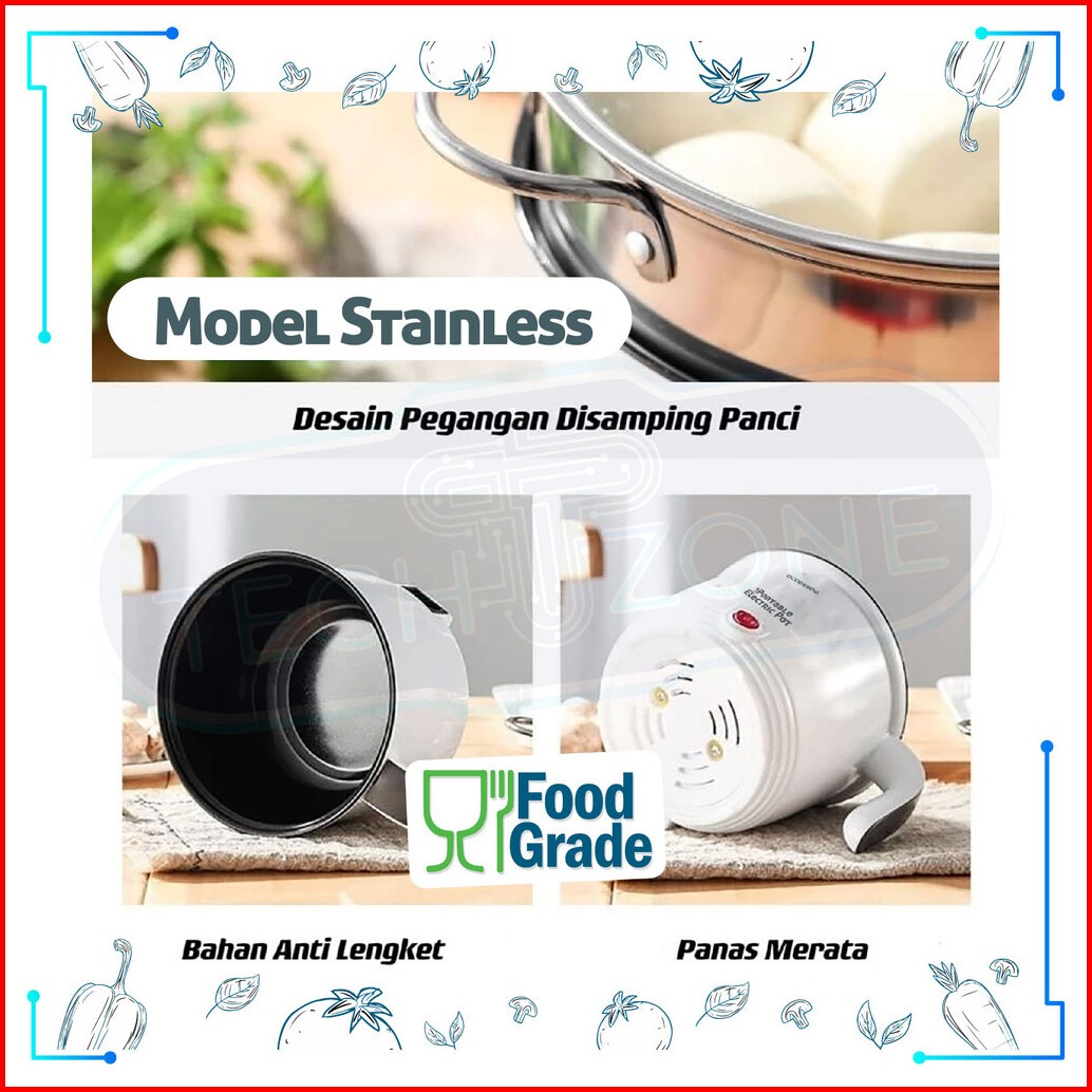 Panci Listrik Portable Food Grade Anti Lengket Teflon Electric Pan Free Kukusan Bergaransi Resmi - Techzone