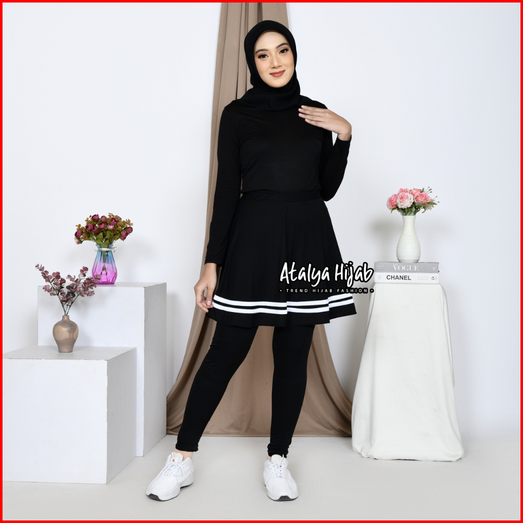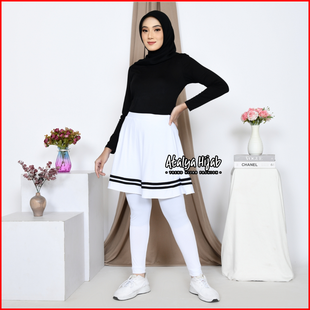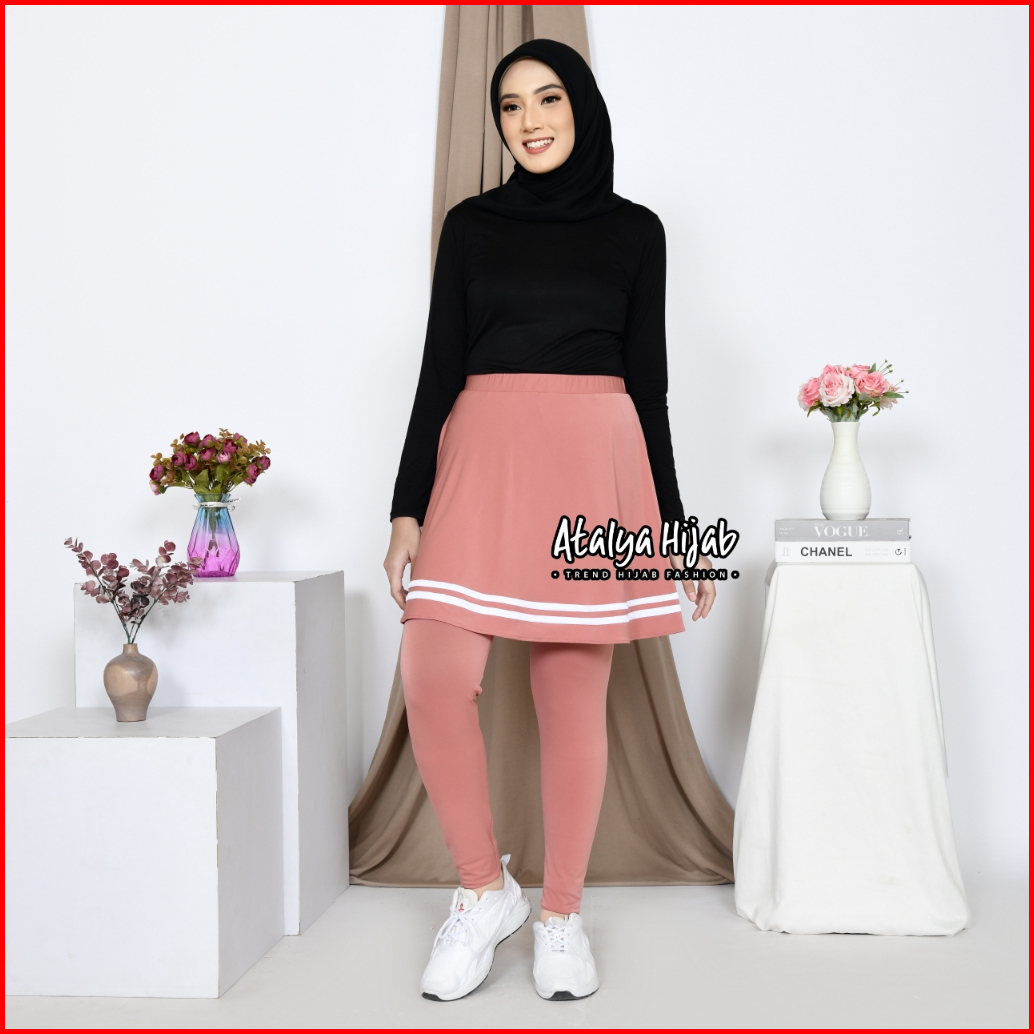 Atalya Hijab Rok Legging List Olahraga Sport Jogging Lari Sepeda Zumba Yoga Dance Outdorr