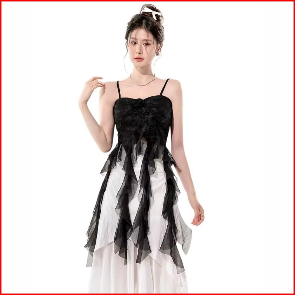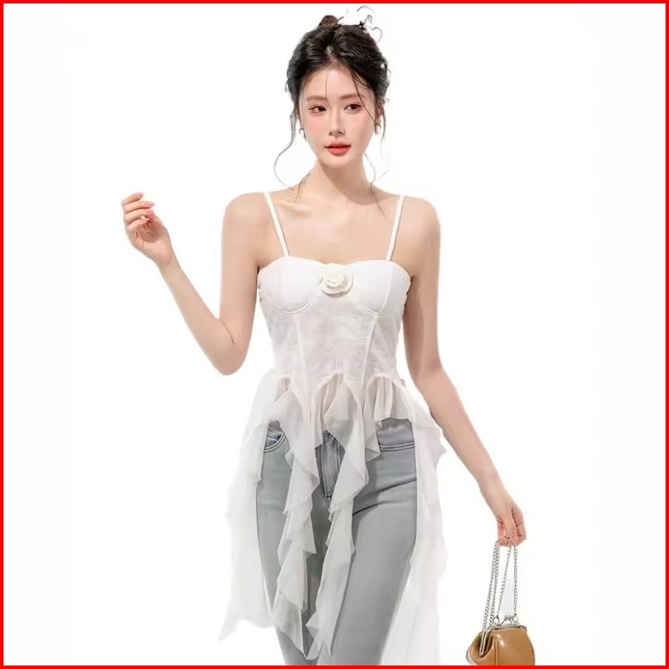 Comfit - Und513 - Tanktop Atasan Tile Rumbai Panjang Tanpa Lengan Berenda Transparan Tepi Berumbai