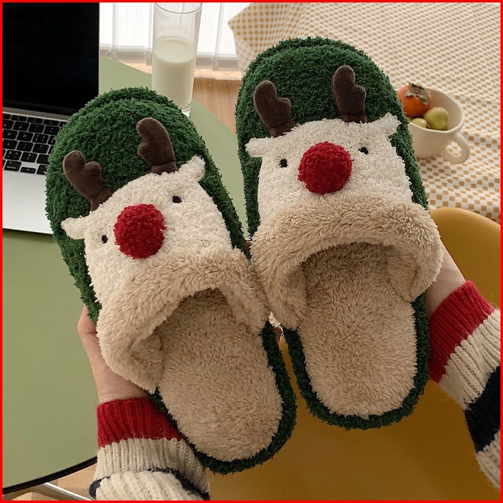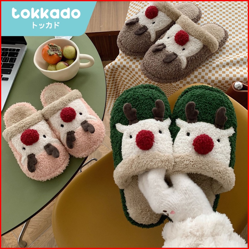 Tokkado Rudolf Rusa Sandal Rumah Premium Bulu Boneka Kamar Wanita Hadiah Natal Christmas Gift Lucu