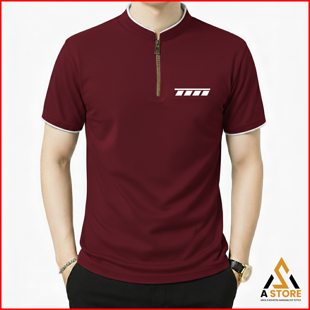 Kaos Polo Shanghai Saku Dada Motif Resleting Premium Distro - Kaos Kerah Shanghai Pria Saku Polet Zipper Keren