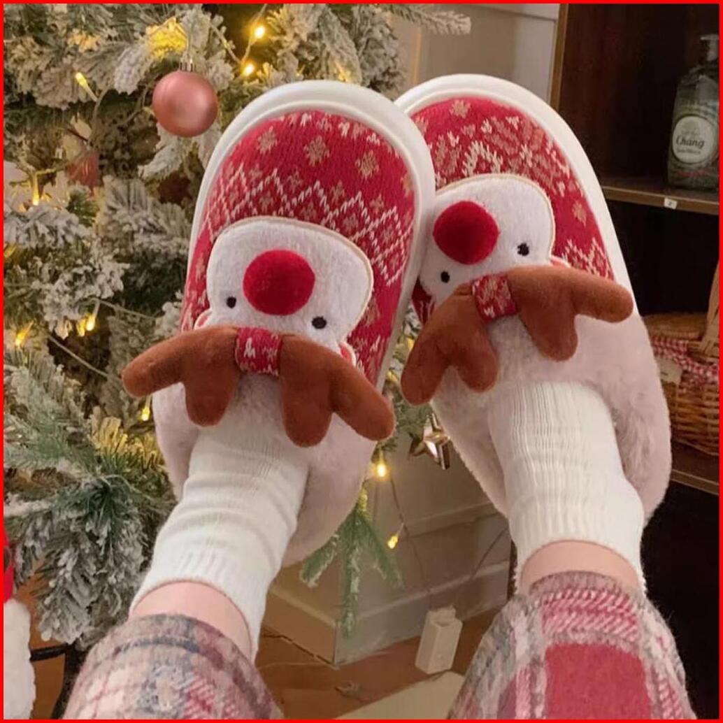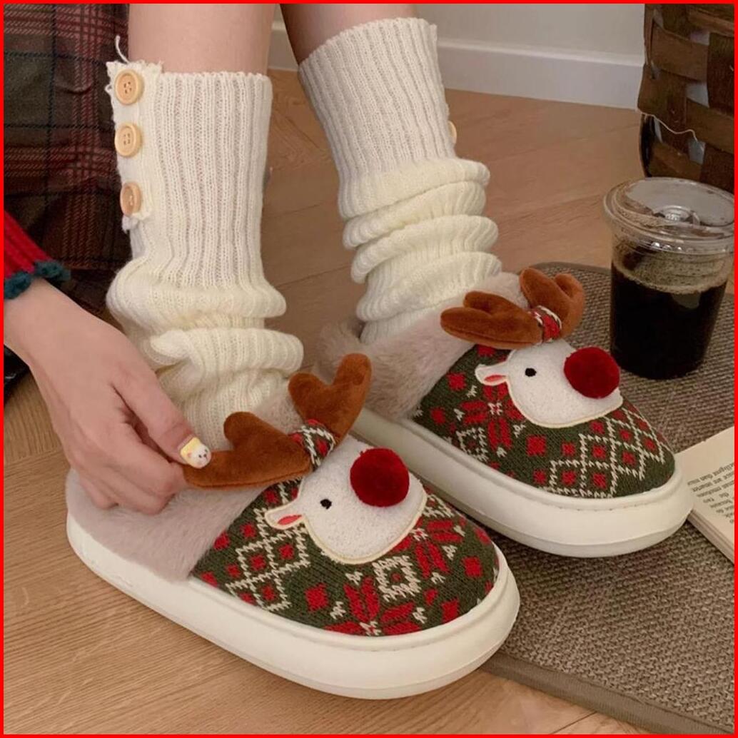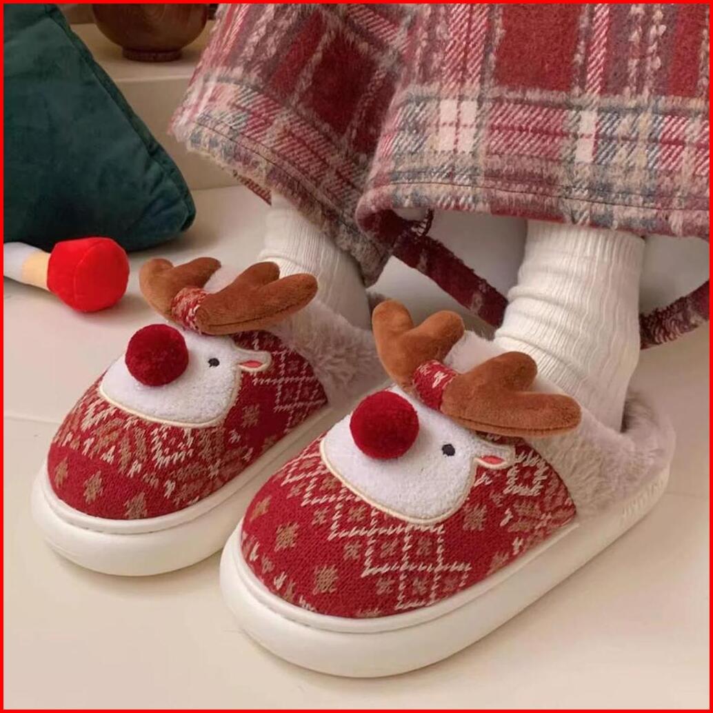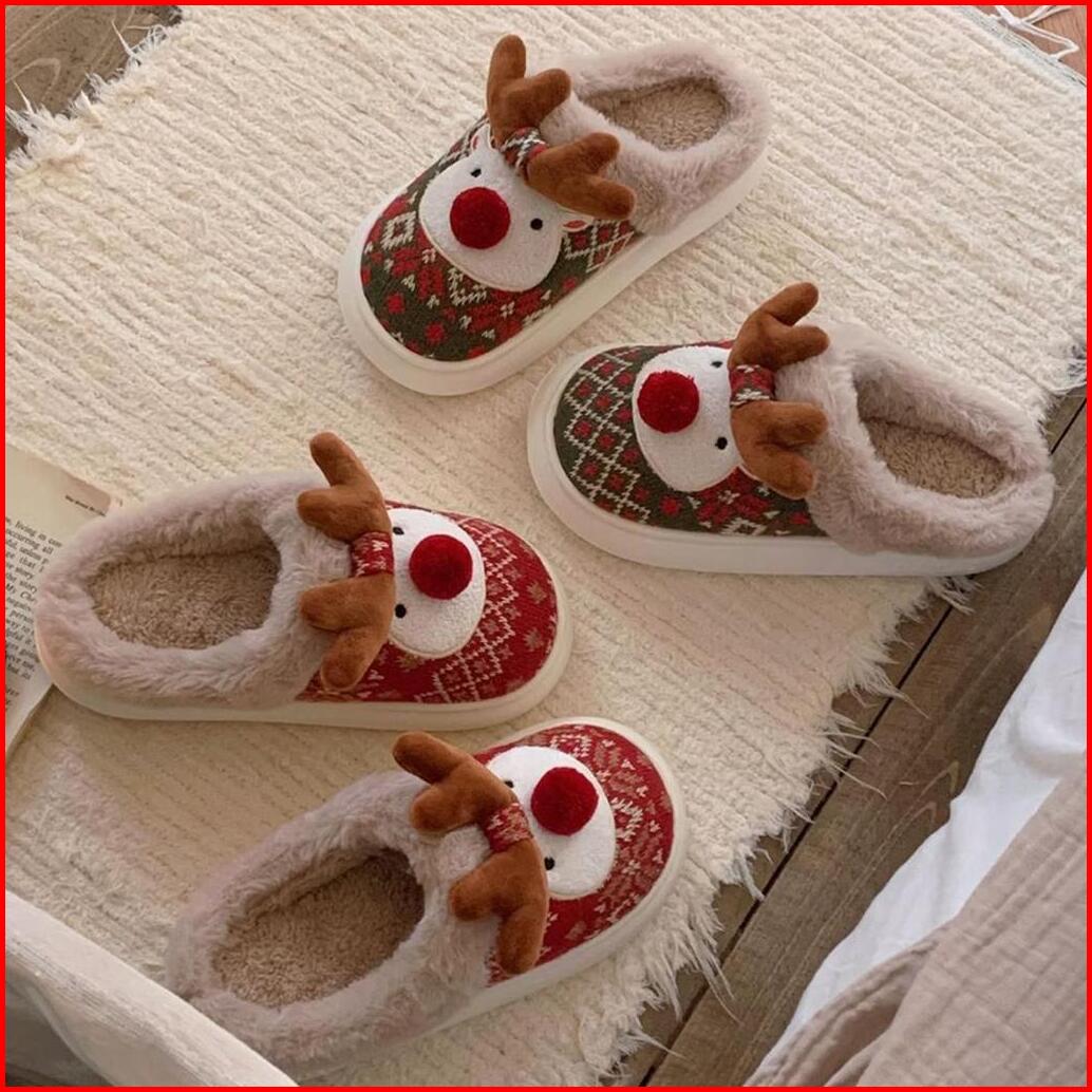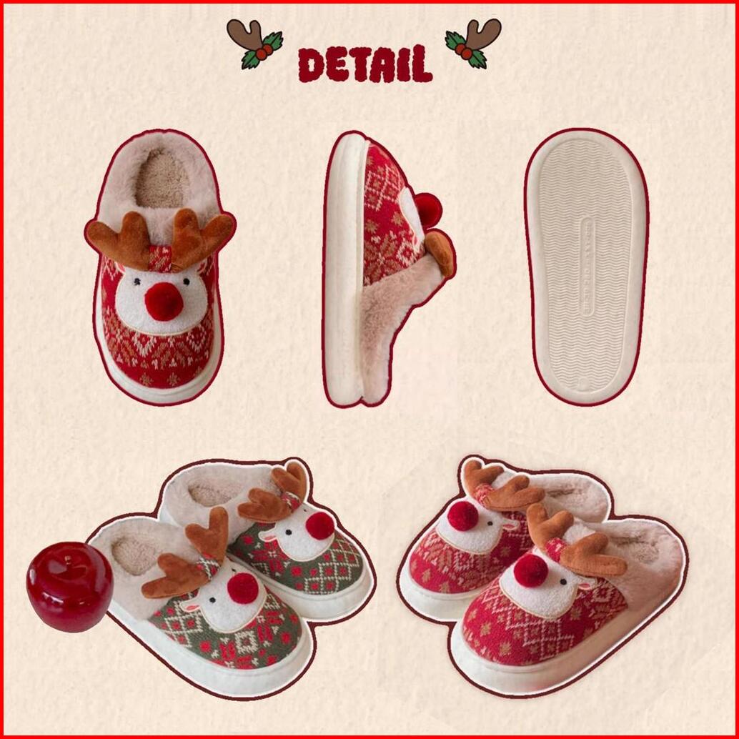 Tokkado Sachi Reindeer Sandal Rumah Bulu Boneka Eva Kamar Wanita Rusa Natal Christmas Xmas Empuk Lucu