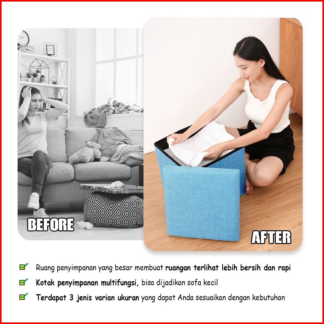 Home Dekoration Kursi Box Lipat Serbaguna 3 Ukuran Kotak Penyimpanan Sofa Box Multifungsi