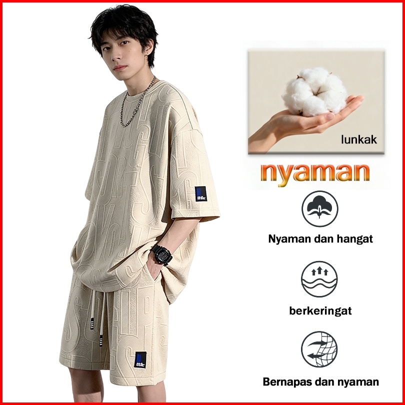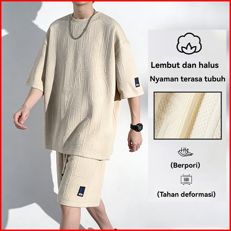 Setelan Pria Kaos Oversize Cowok Bundling Satu Set Setelan Baju Pendek Dryfit Baju Outfit Waffle