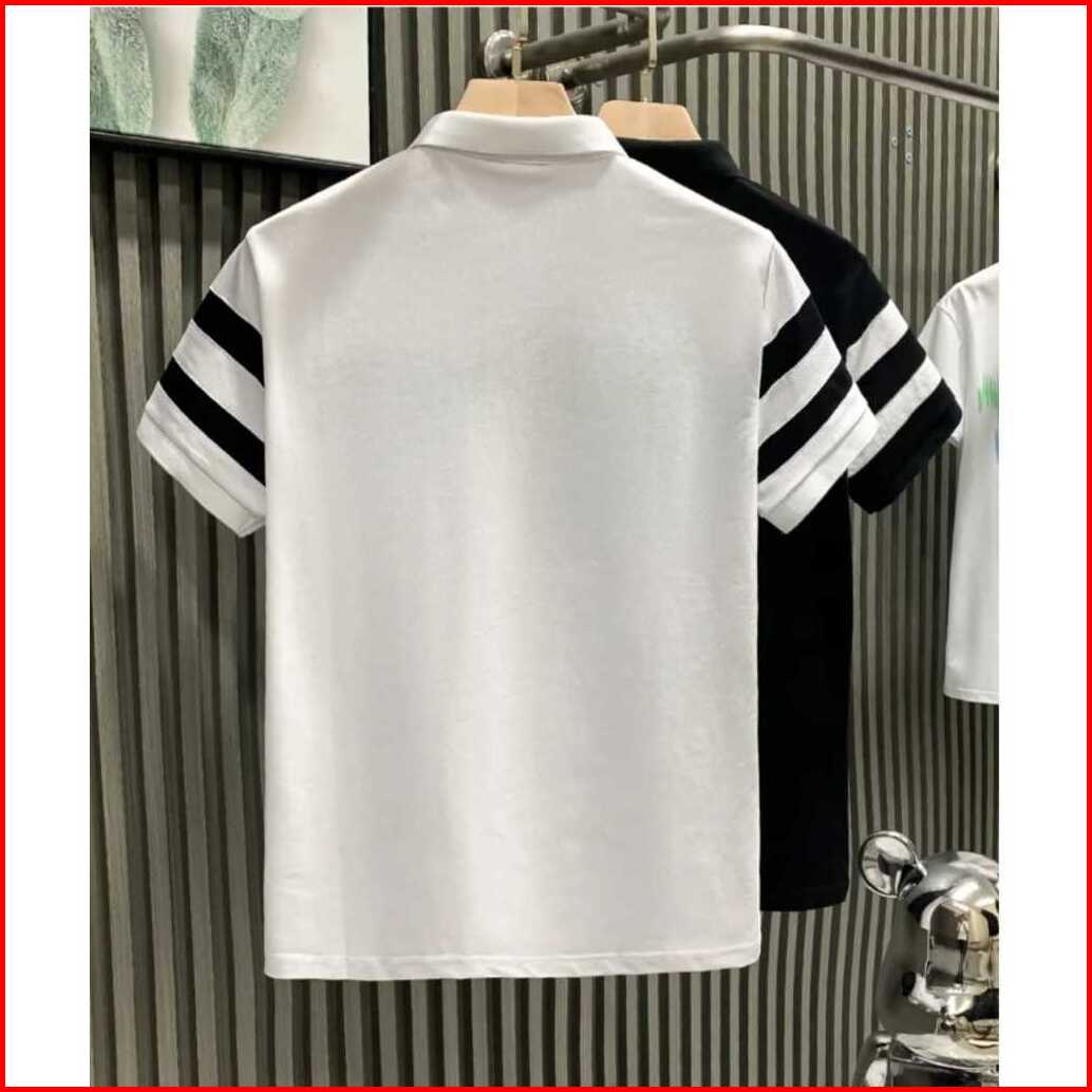 Kaos Pria Berkerah Kekinian Model Kombinasi Lengan Pendek Style Korea El Fazza